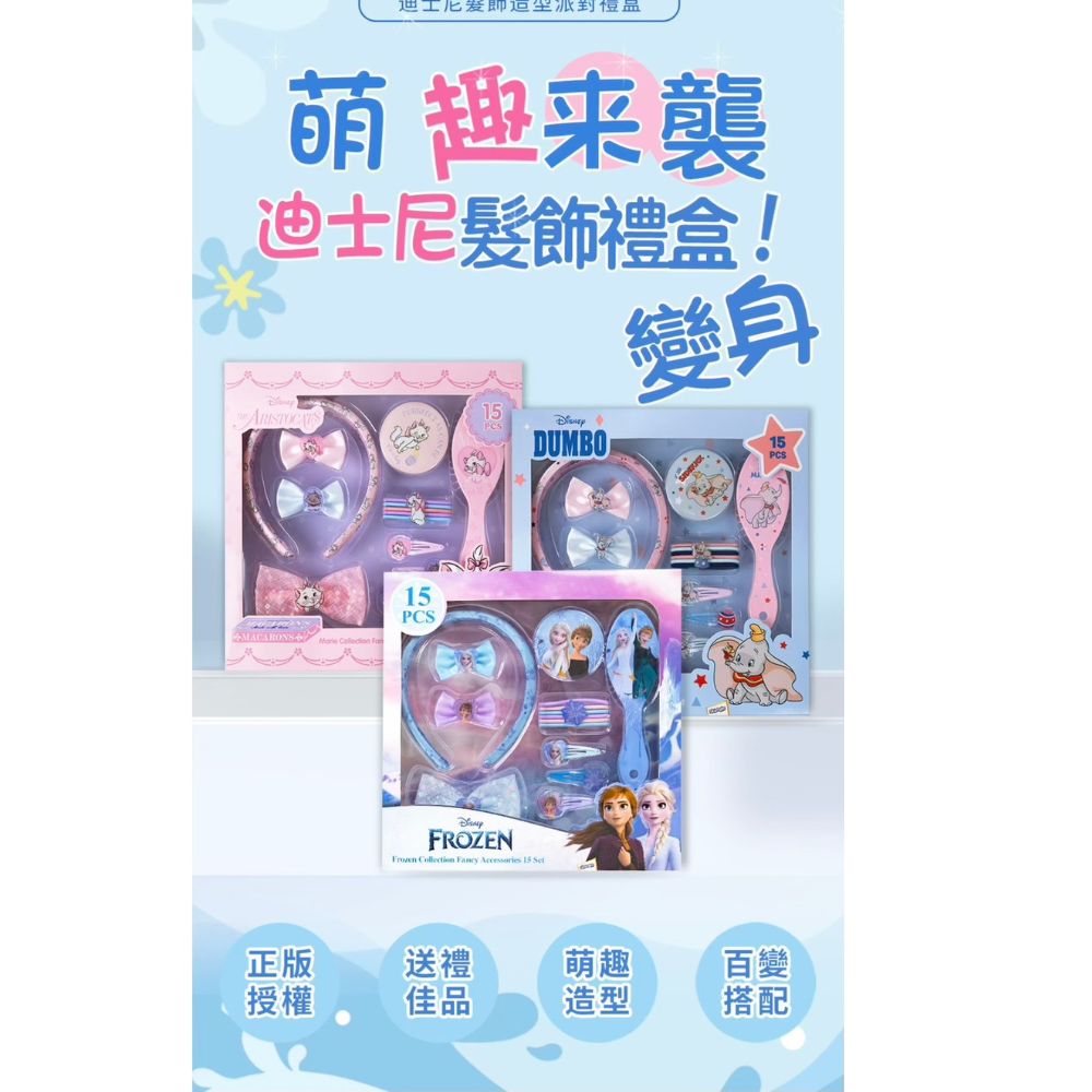 【Disney 迪士尼】裝扮髮飾15件套裝(兒童髮飾 女孩禮物 公主造型 生日禮物)