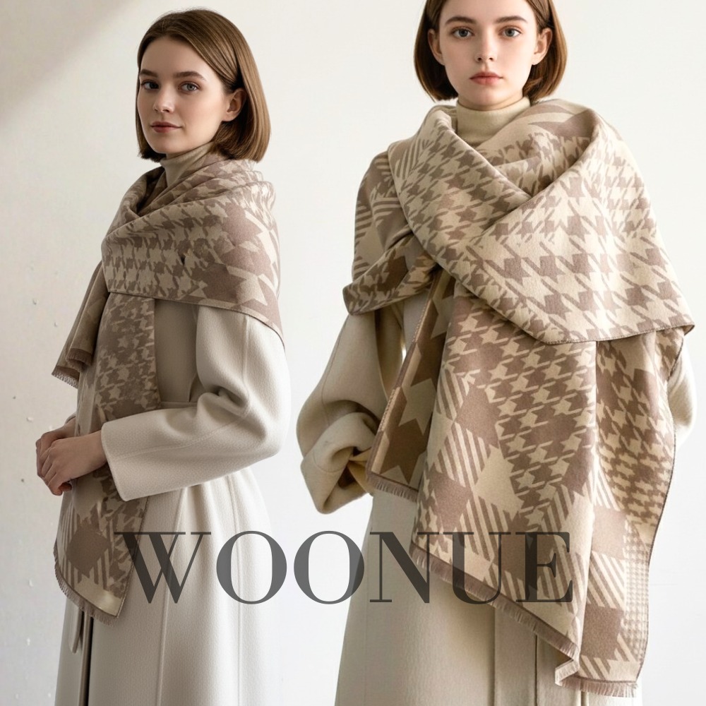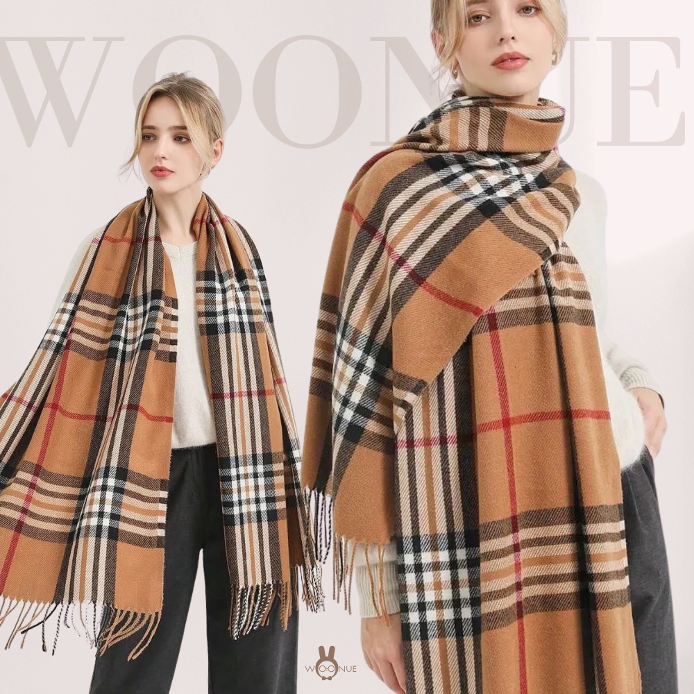 【WOONUE】30款超柔羊毛絨質感英倫千鳥格紋圍巾披肩百搭圍巾斗篷巴寶莉風格(保暖女友老婆媽媽生日聖誕禮物)