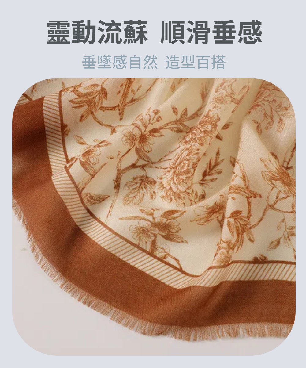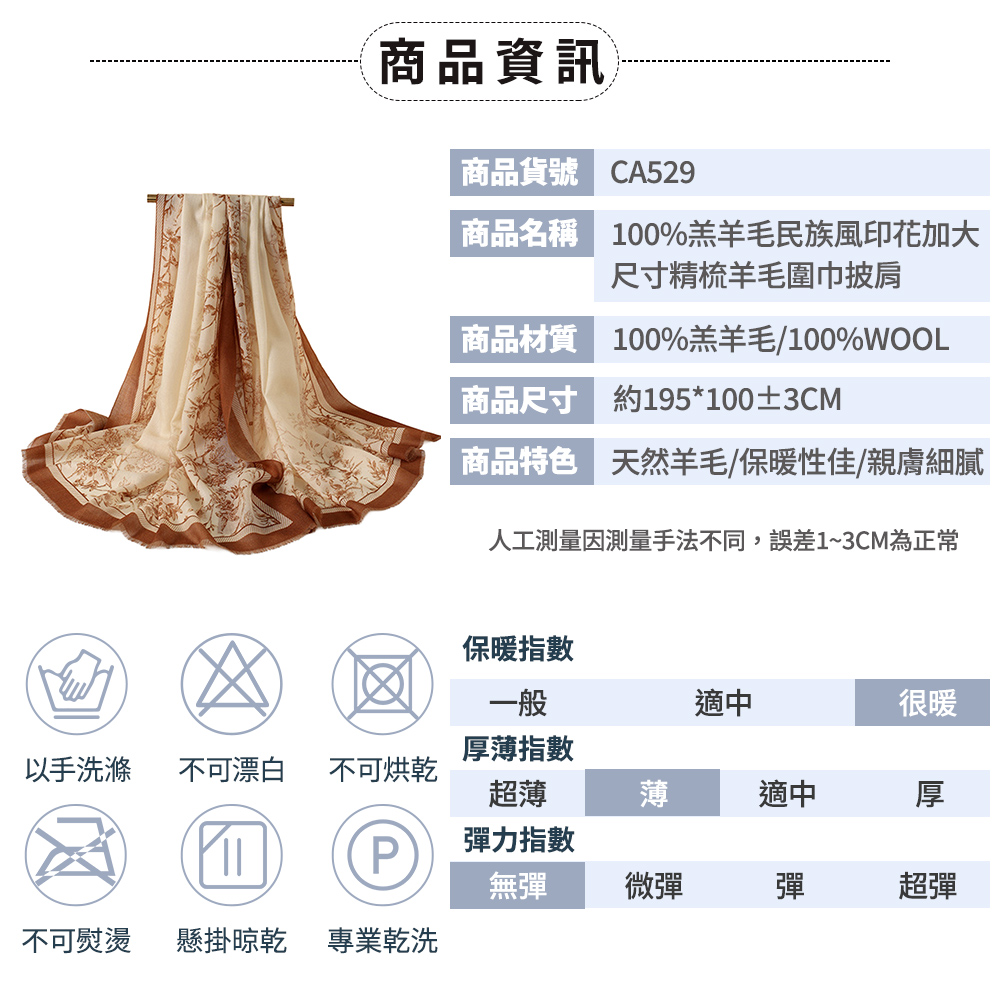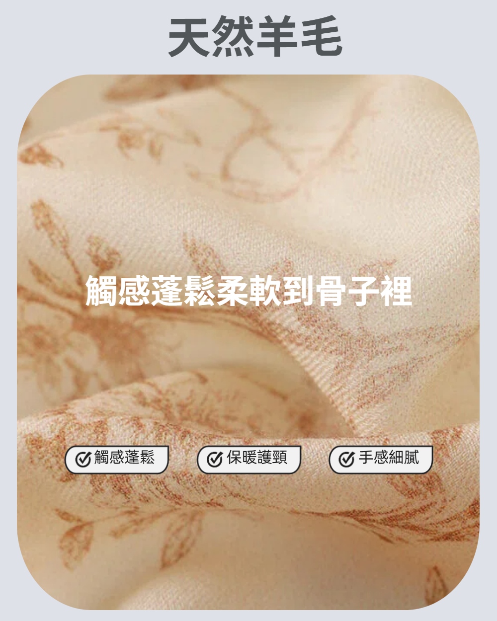 【I.Dear】100%羔羊毛民族風印花加大尺寸精梳羊毛圍巾披肩(橘米色/羔羊絨/交換禮物)