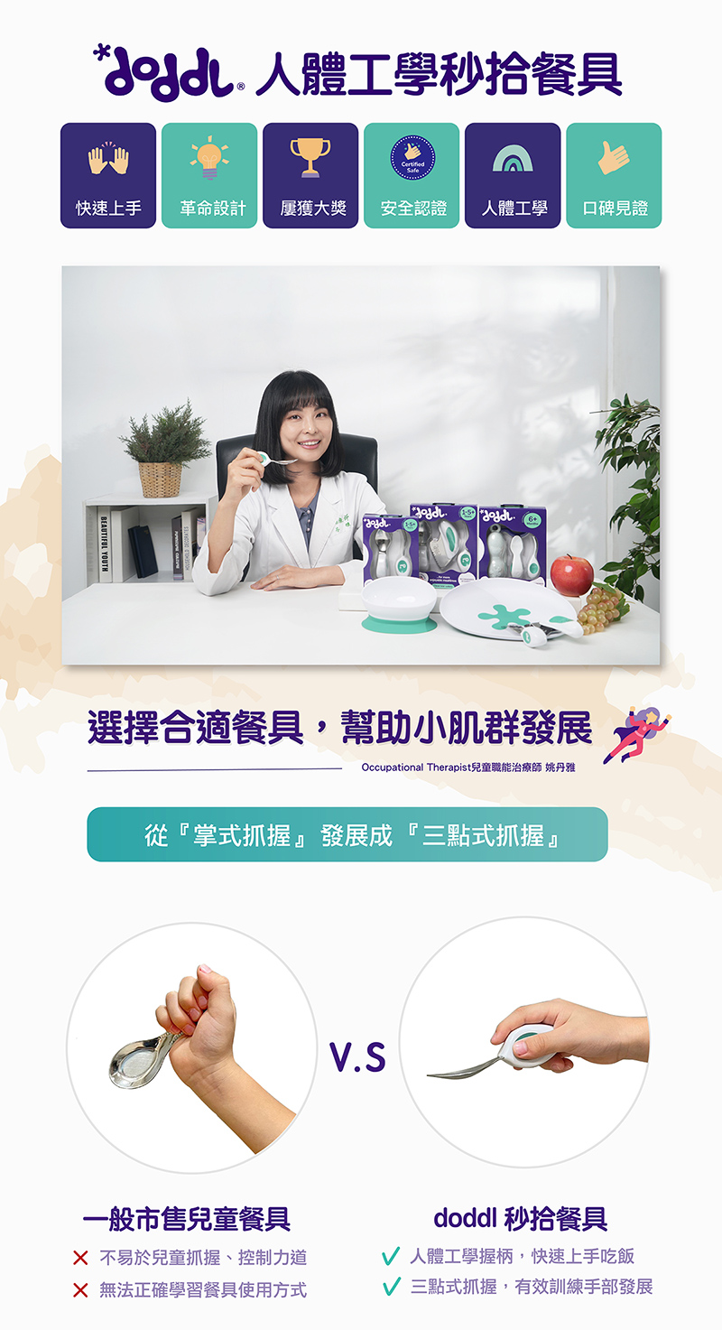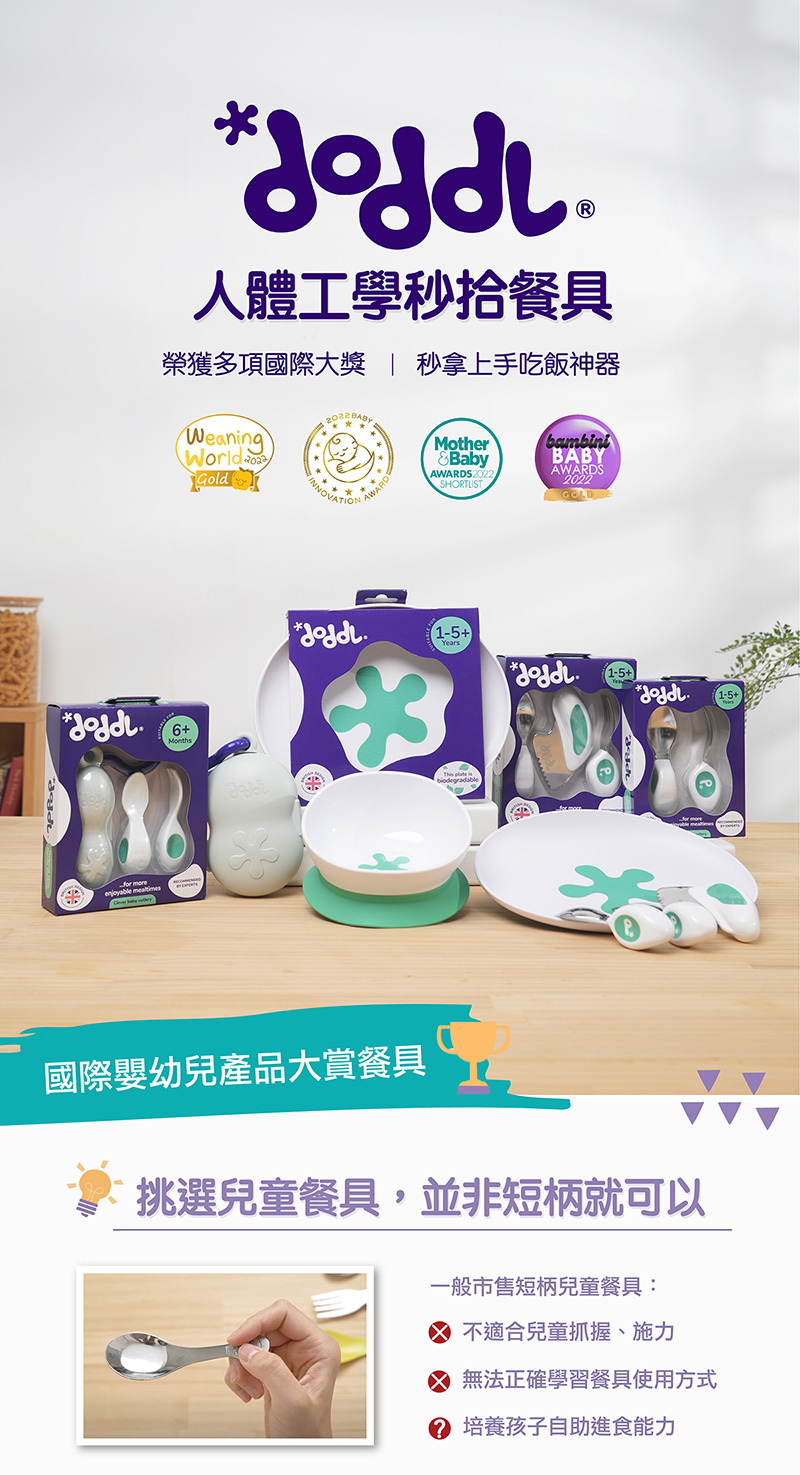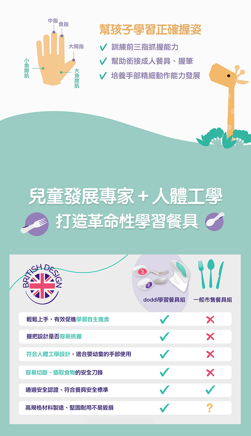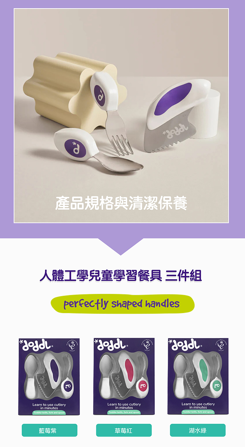 【Doddl】英國人體工學秒拾餐具 - 兒童學習餐具 3 件組(新色 乾燥玫瑰粉)