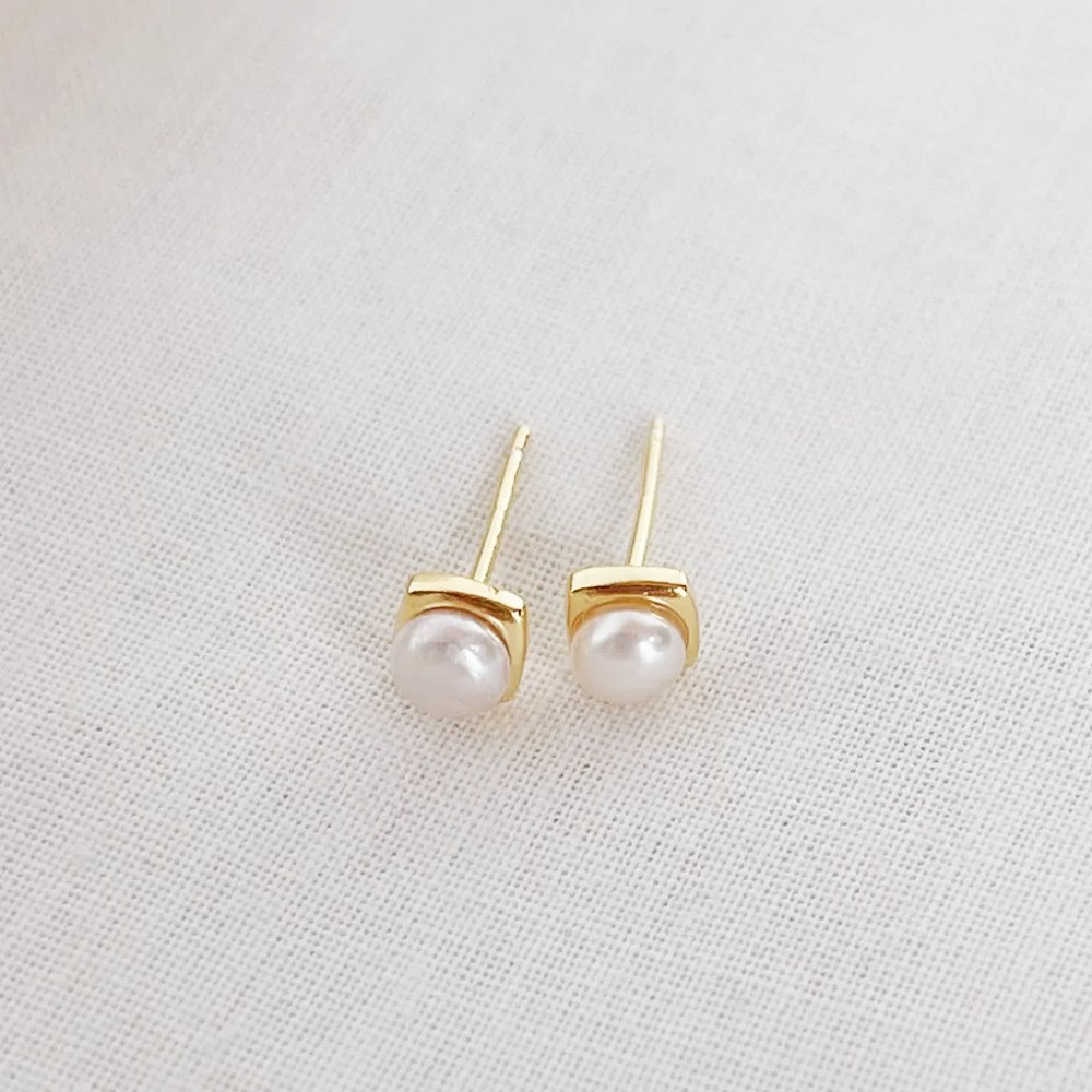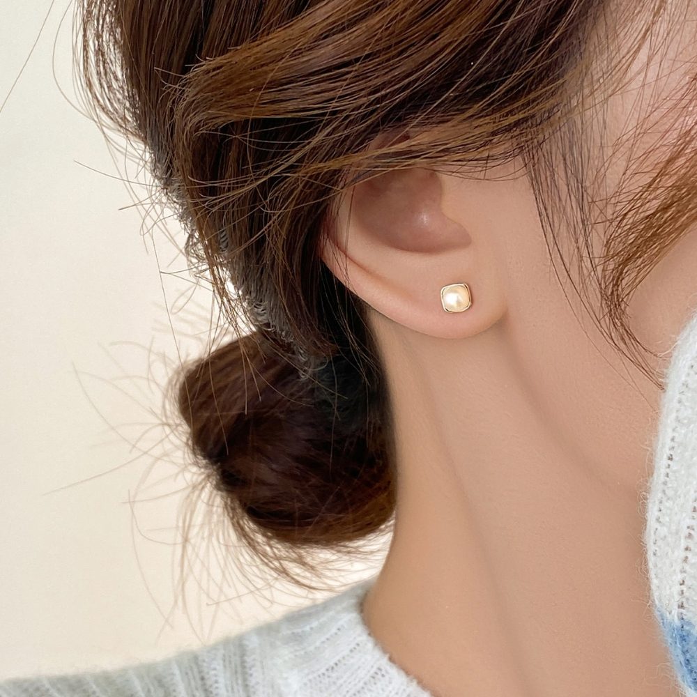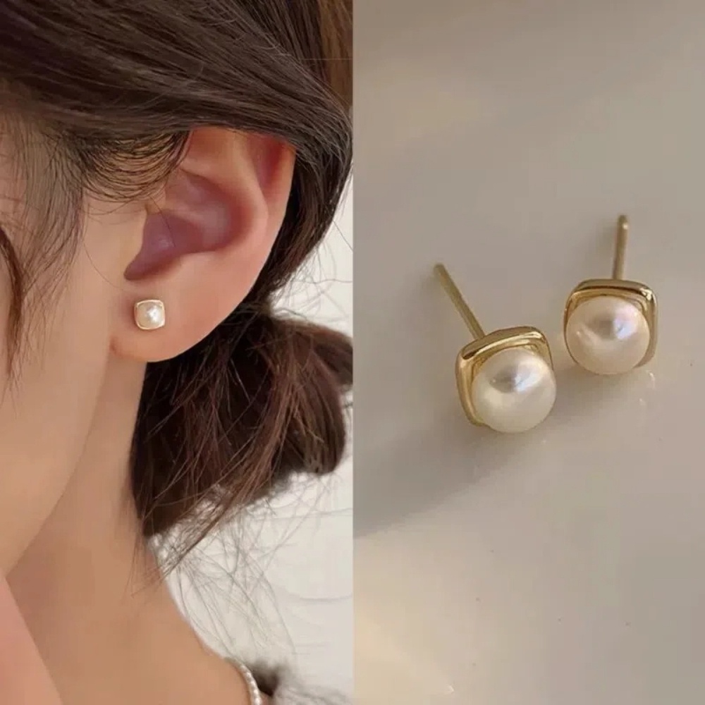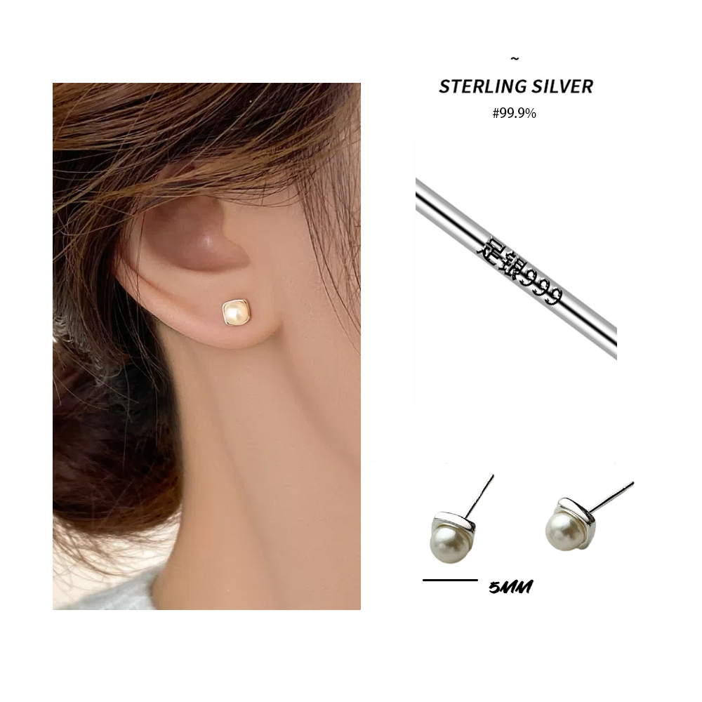 【A&R】S999純銀韓系氣質淡水珍珠方形耳針款耳環 兩色任選(附矽膠耳扣 抗過敏 養耳洞 生日 情人節 禮物)