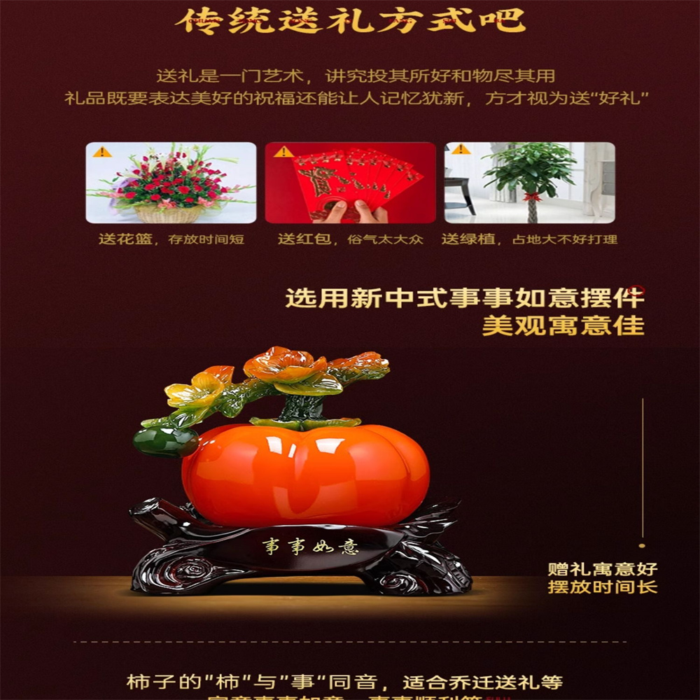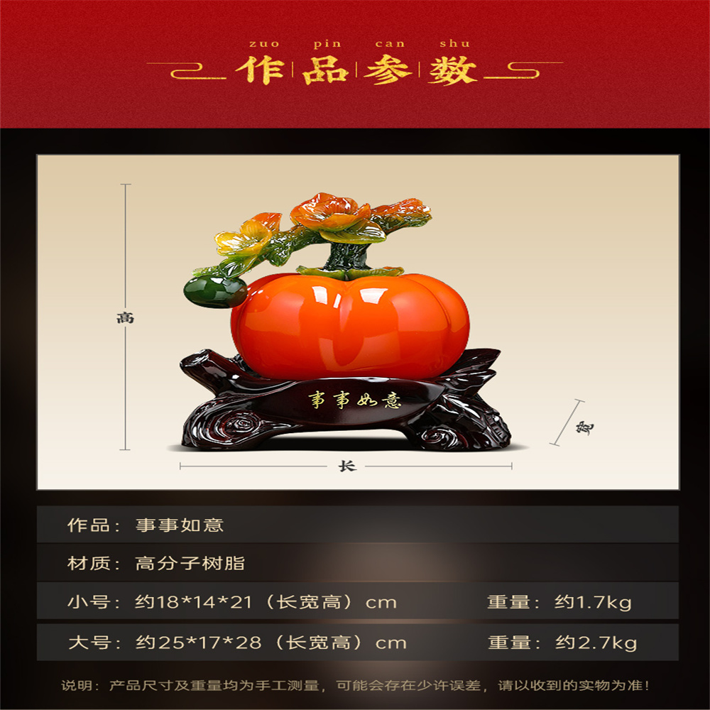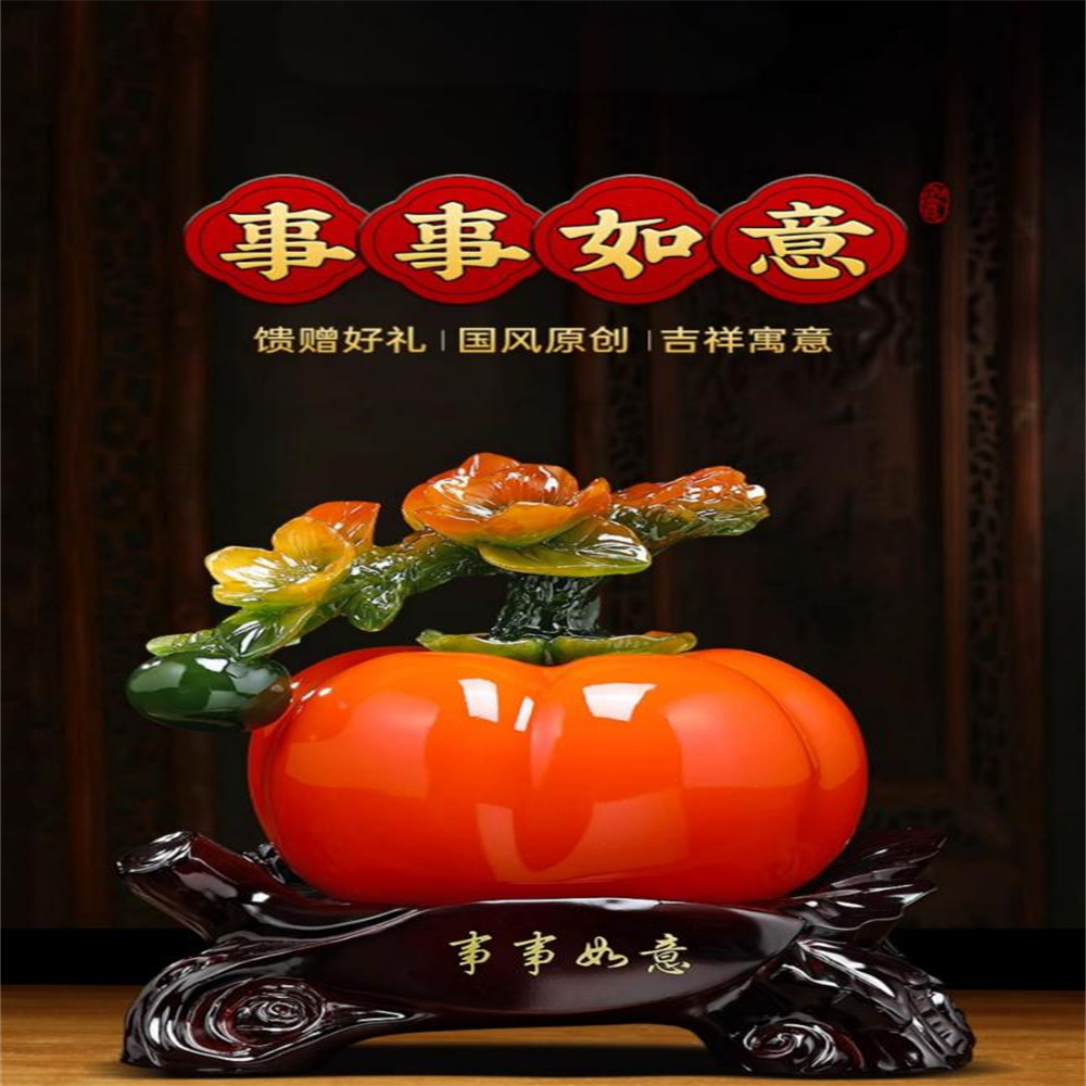 【超微米】事事如意柿子擺件 招財 客廳酒櫃裝飾品 辦公室擺件 喬遷禮物(事事如意招財擺件 小號18*14*21CM)