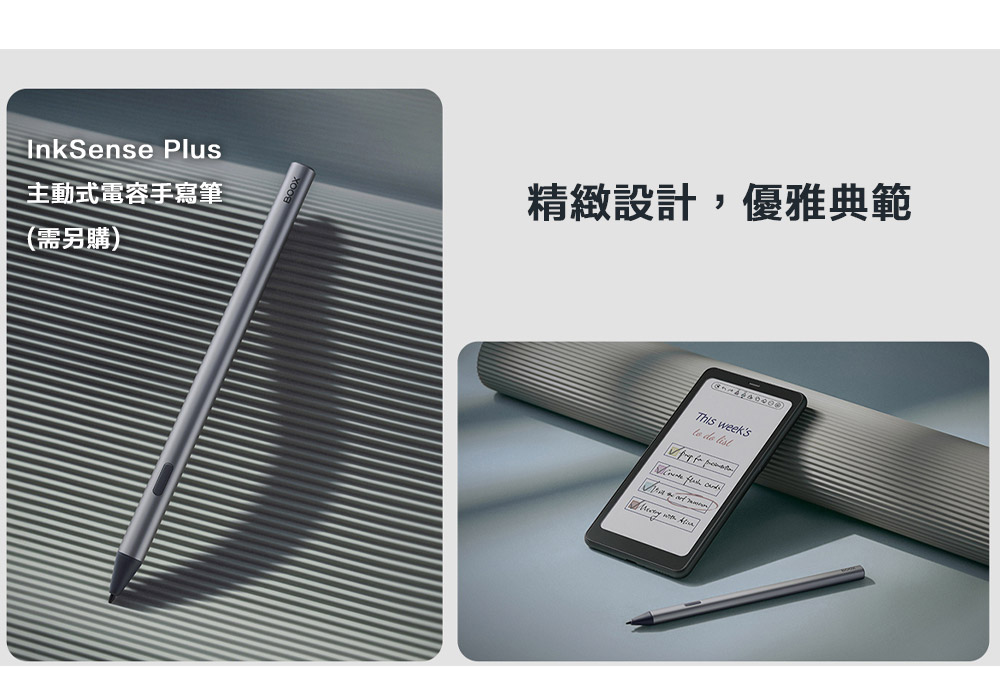 相容 BOOX InkSense Plus 手寫筆 (需另購),隨時記錄靈感、描繪想法。3950 mAh 電量提供持久續航,讓靈感與閱讀始終不間斷。