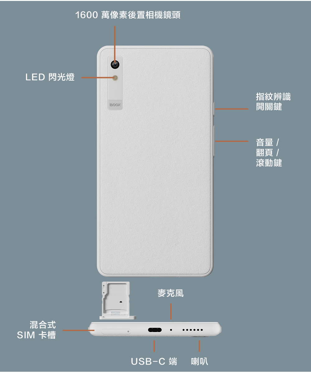 混合式 SIM 卡槽,可插入行動數據 SIM 卡,並支援擴充儲存空間。支援雙卡或記憶卡擴充,最高可擴充至 1TB,輕鬆容納你的整座圖書館。