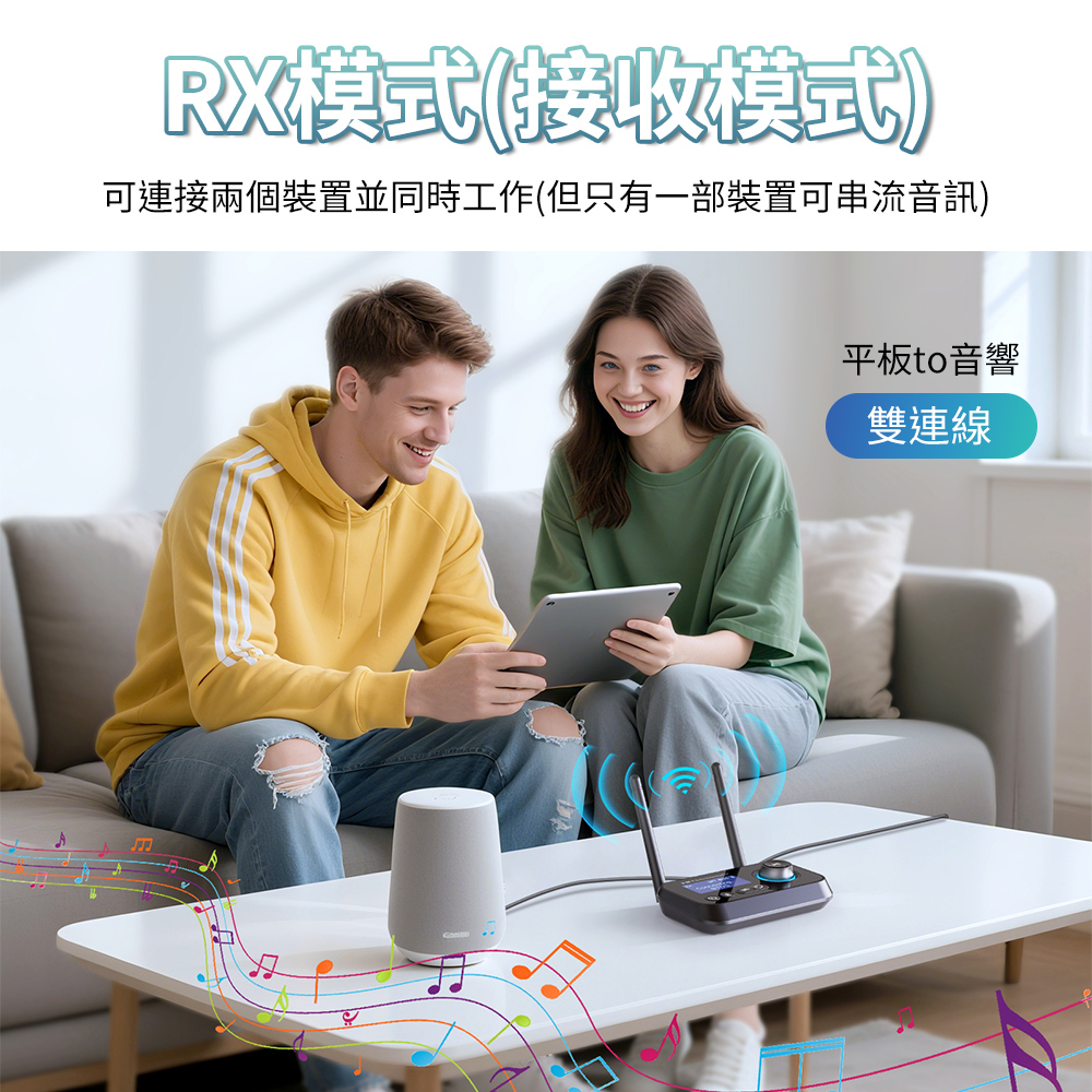 ✨雙模切換:TX/RX自由轉換,雙裝置同時連線