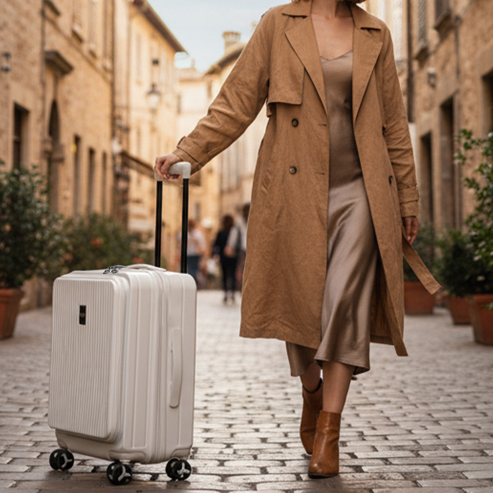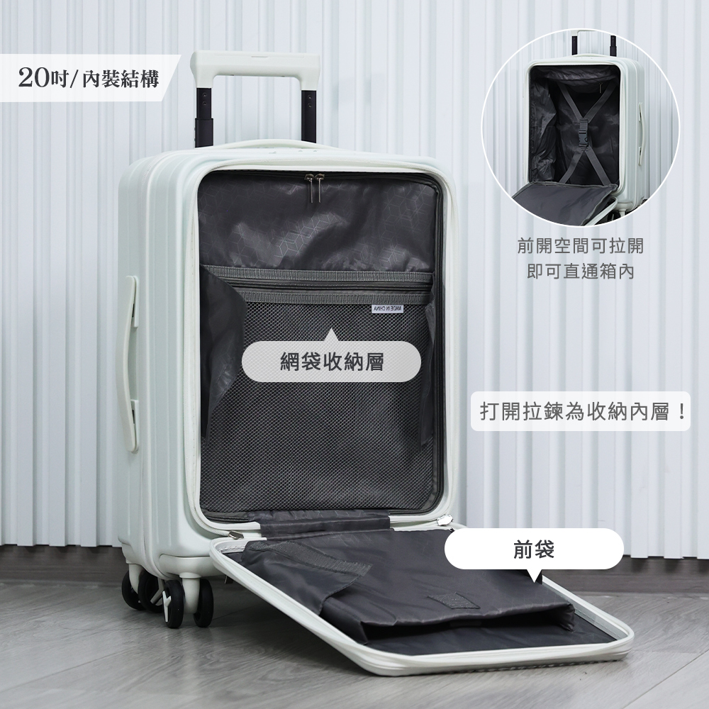 20吋登機箱限定直立式開口設計,可輕鬆拿取平板、筆電、充電線...等隨身物品