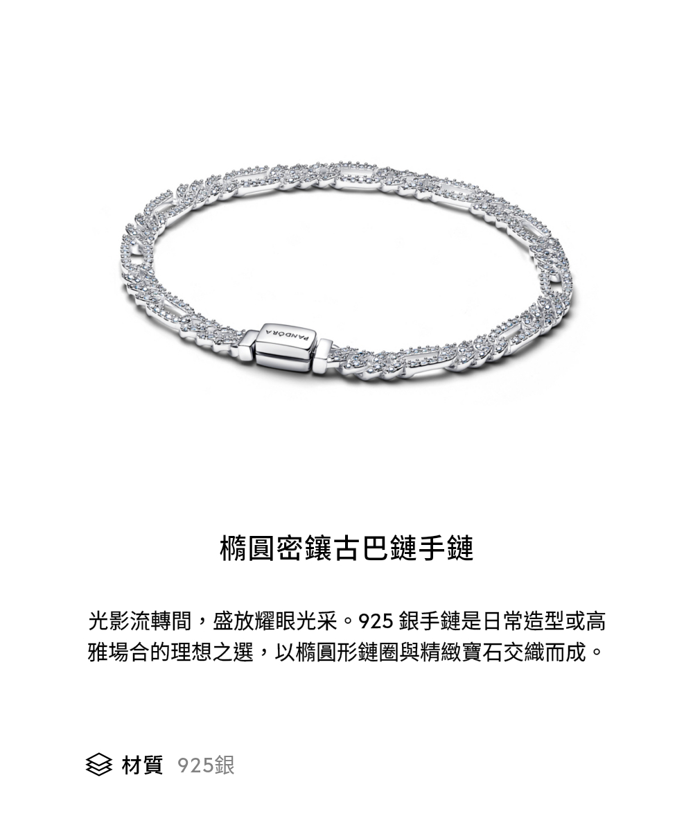 【Pandora 官方直營】橢圓密鑲古巴鏈手鏈