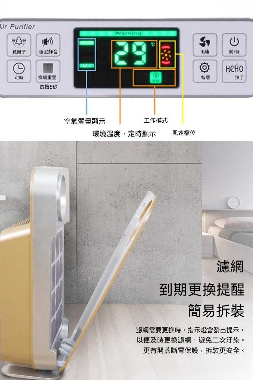 負離子殺菌空氣淨化器(二手菸空氣淨化器/低噪音/除甲醛/去異味/除油煙異味)