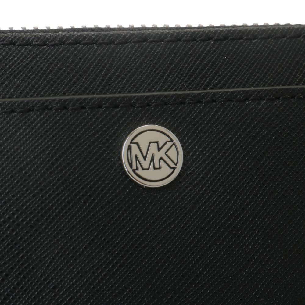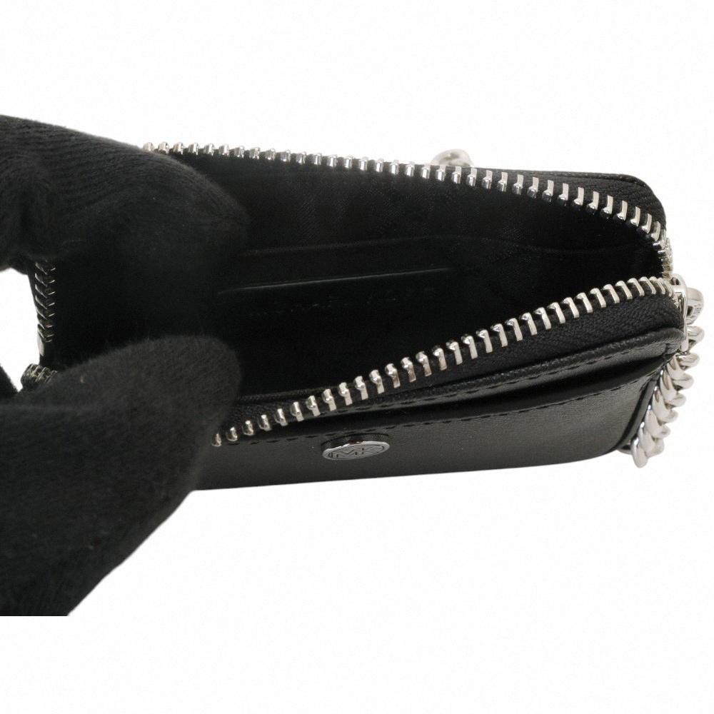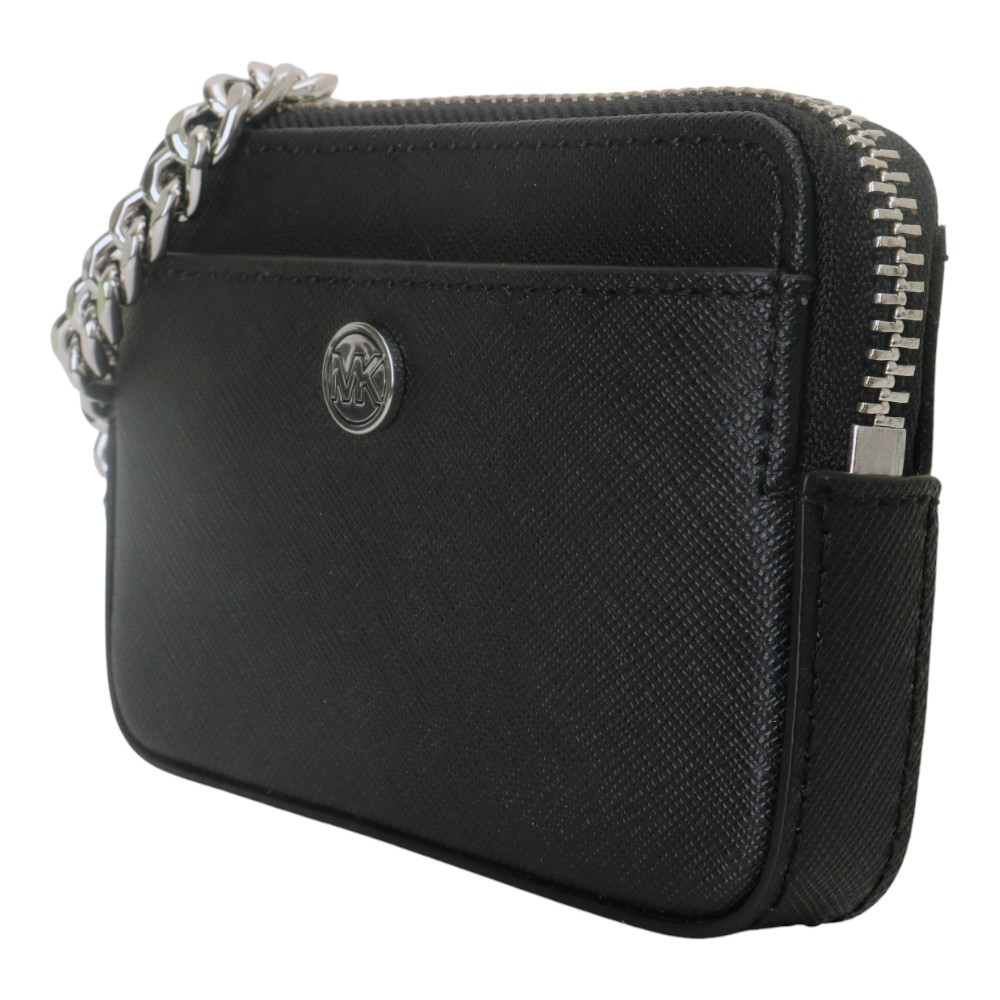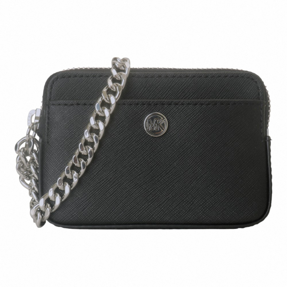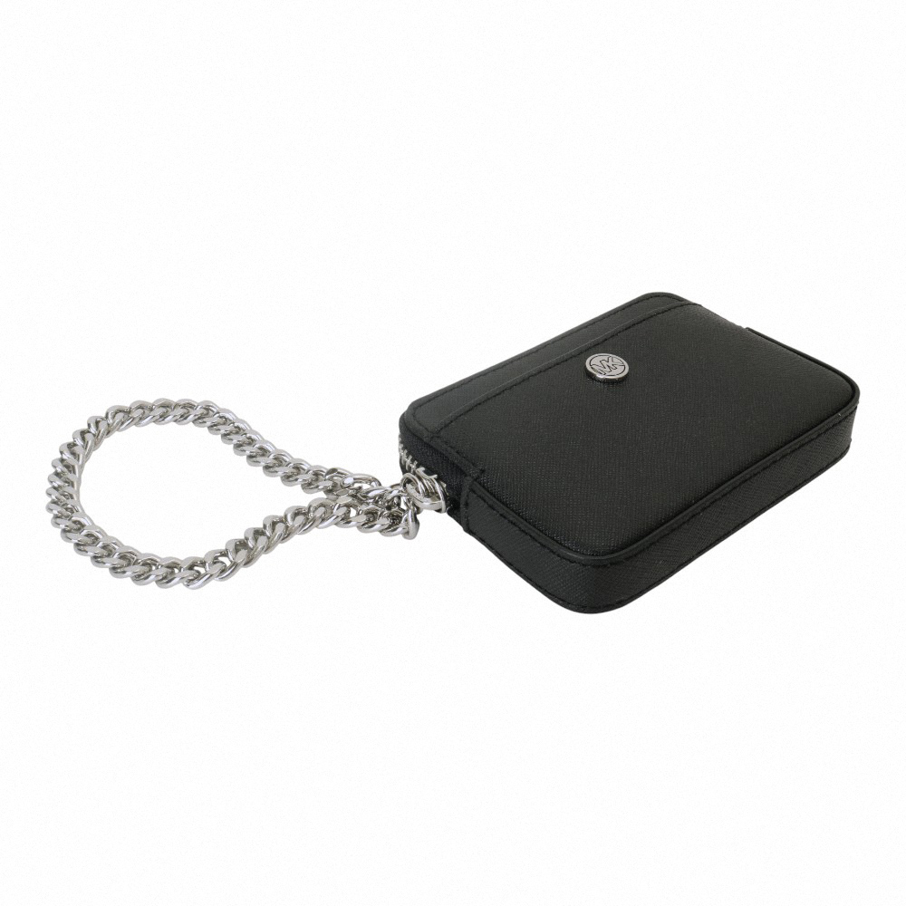 【Michael Kors】小圓MK 防刮銀鍊帶方型卡夾/零錢包(黑)