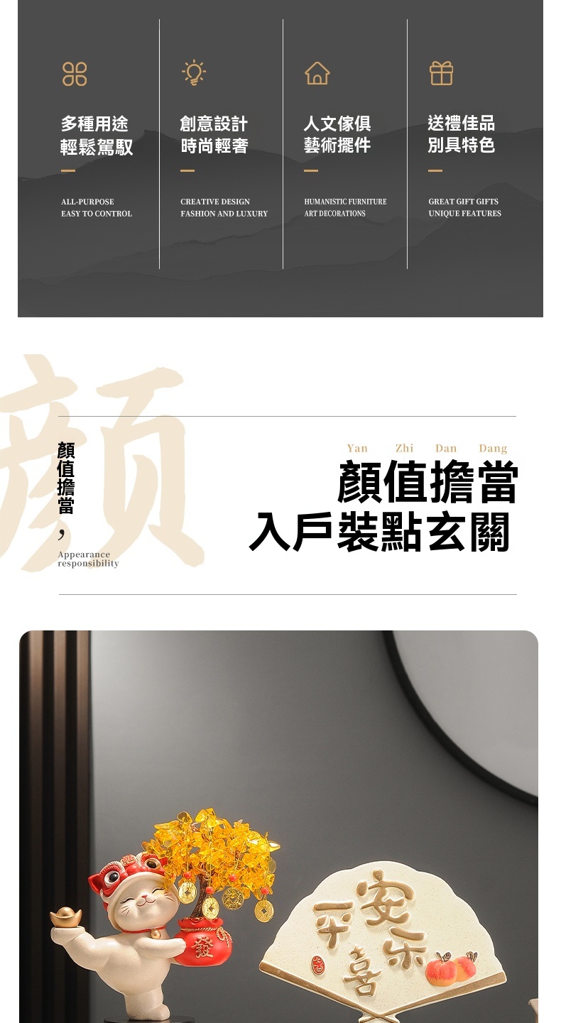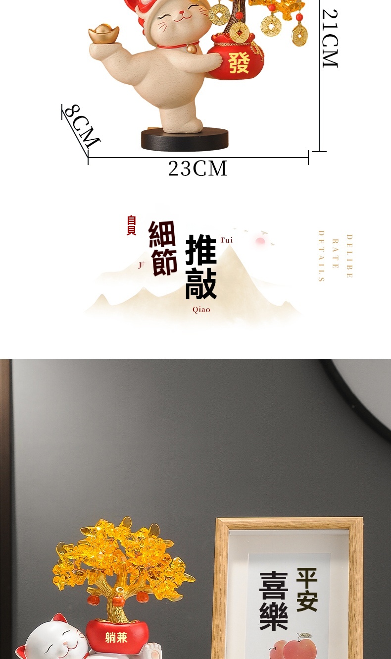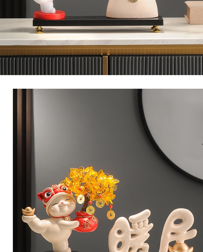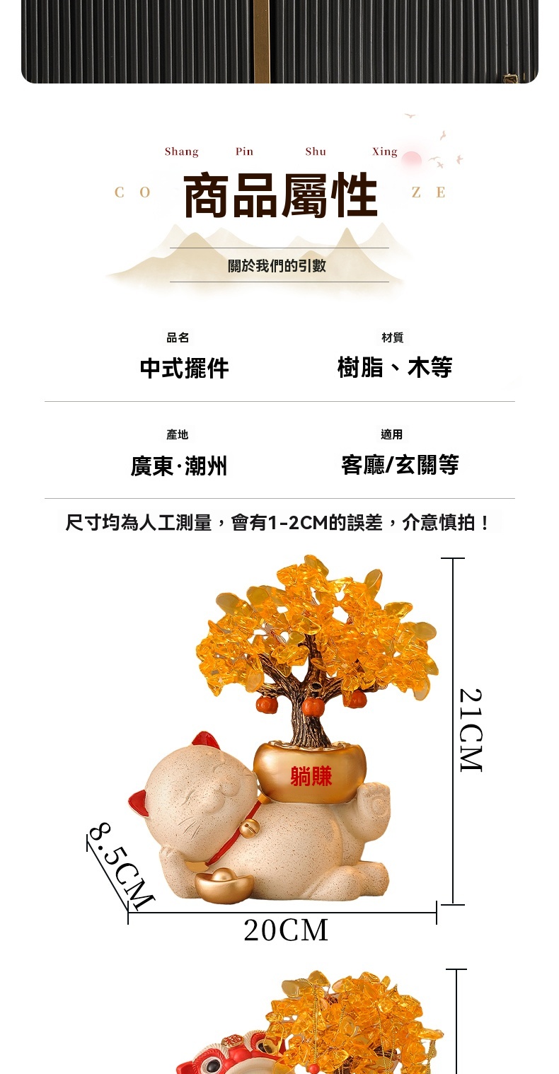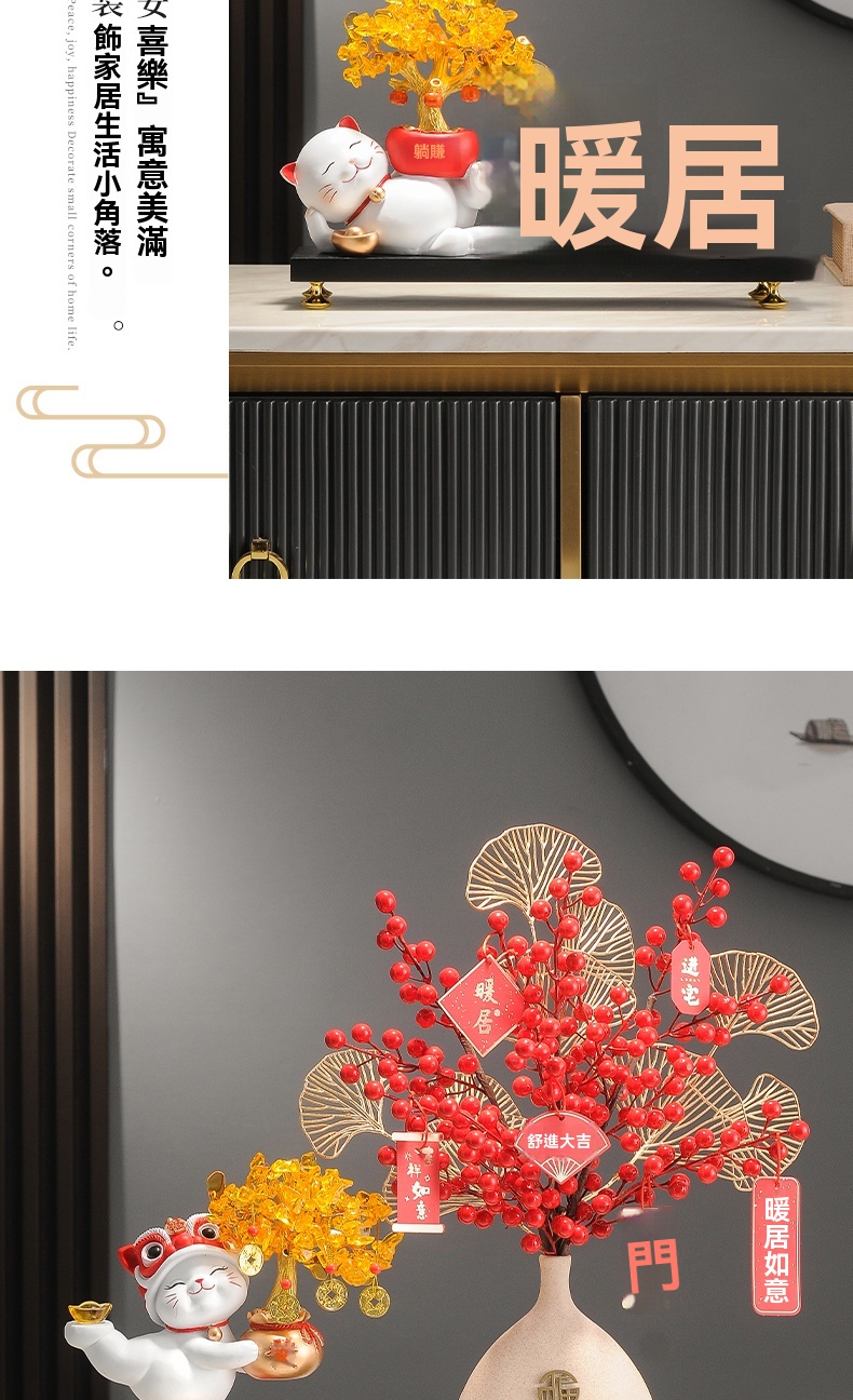 【巨匠】擺件 發財樹招財貓擺件 酒櫃電視櫃開業禮物 店鋪收銀臺擺件 客廳喬遷新居禮品(發財樹招財貓)