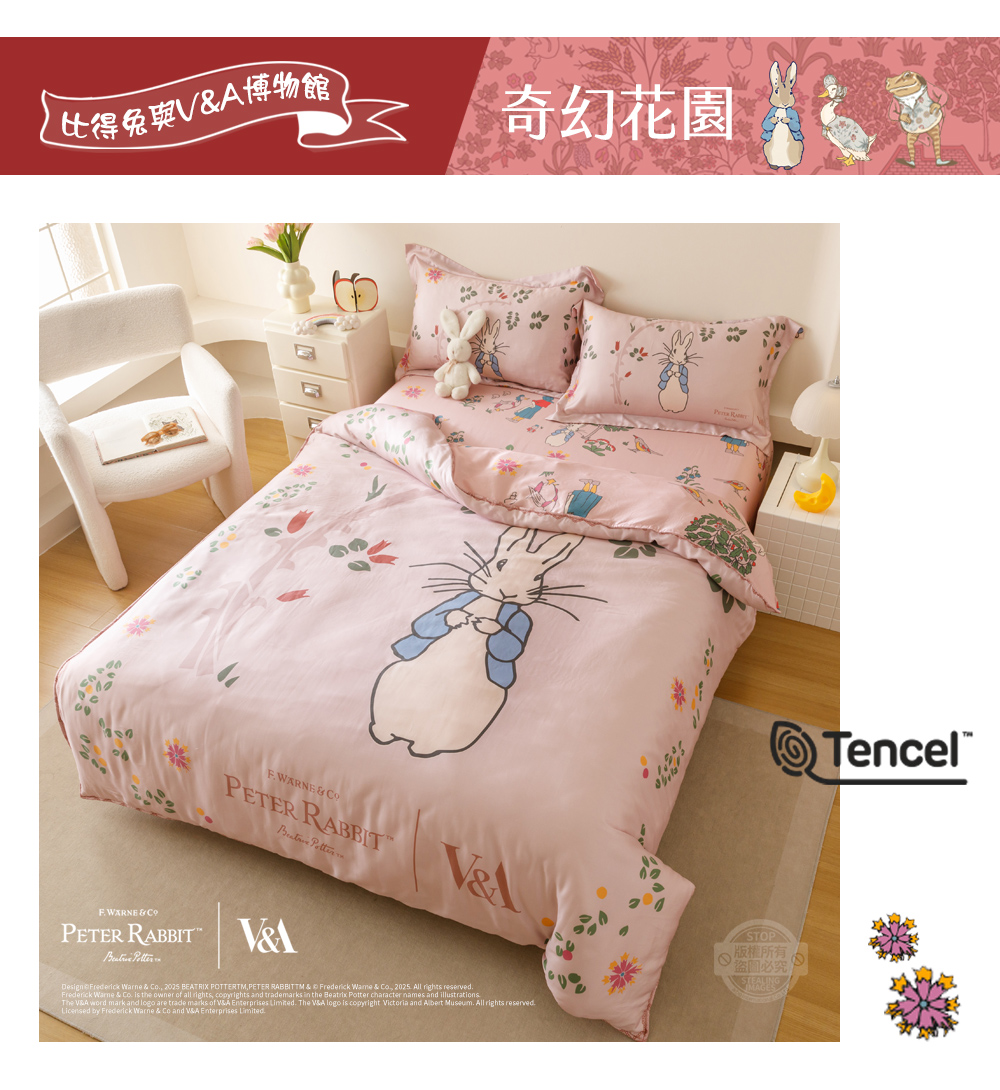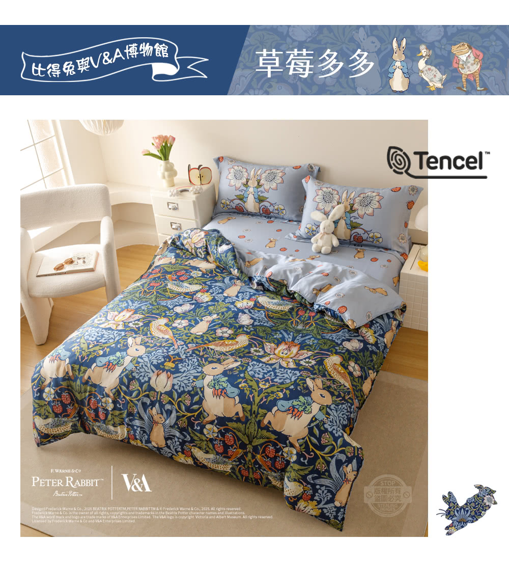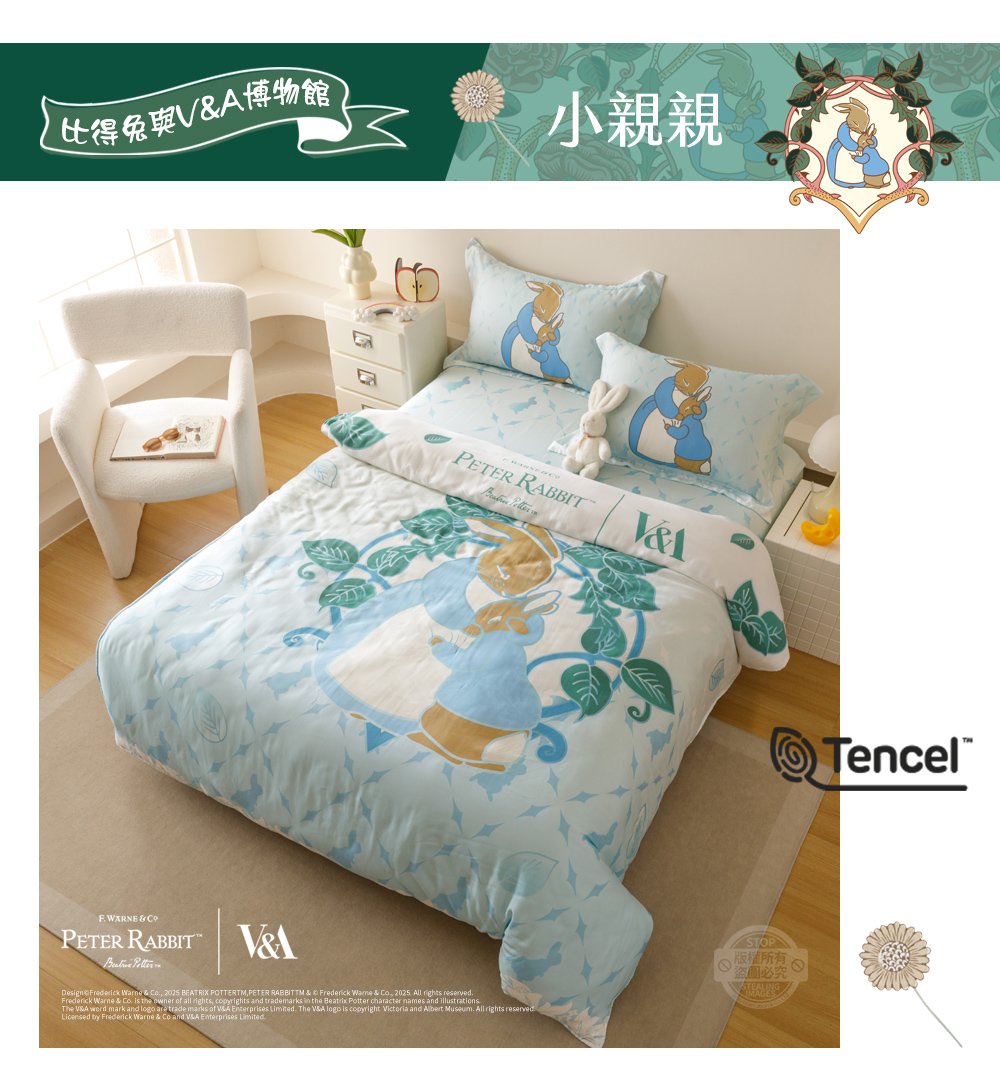 【PETER RABBIT 比得兔】比得兔與V&A博物館 40支天絲床包兩用被組(單/雙/加 均一價/多款選/正版授權/天絲)