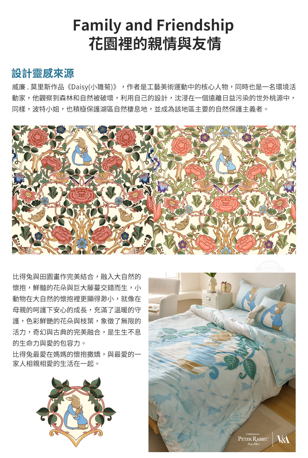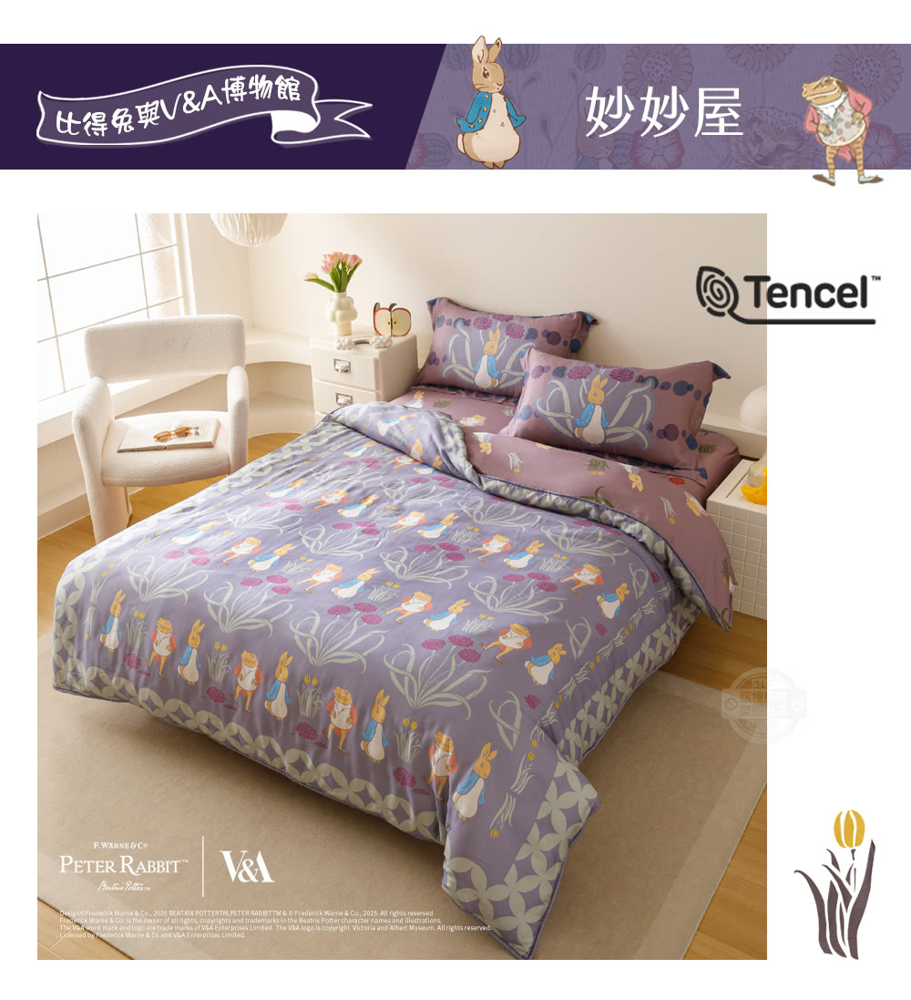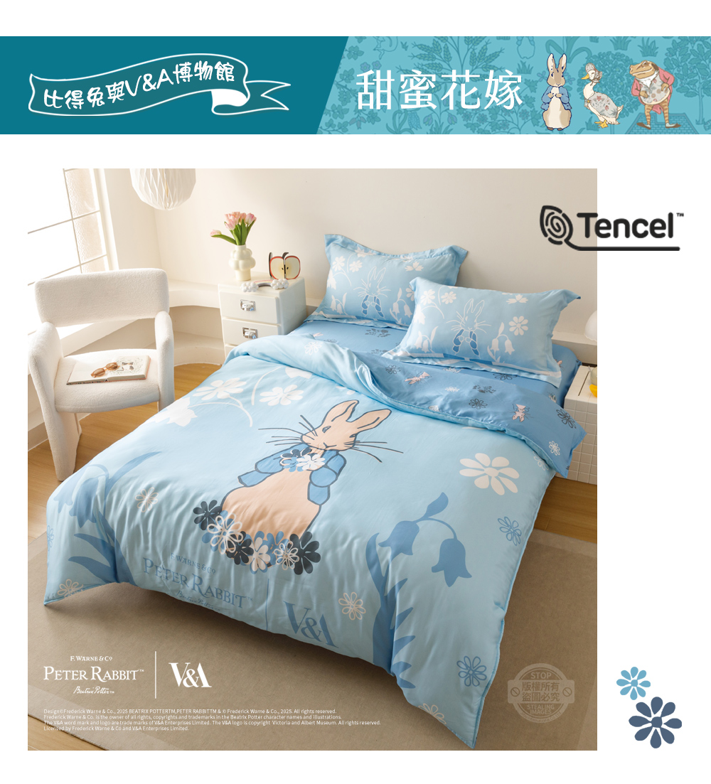 【PETER RABBIT 比得兔】比得兔與V&A博物館 40支天絲床包兩用被組(單/雙/加 均一價/多款選/正版授權/天絲)