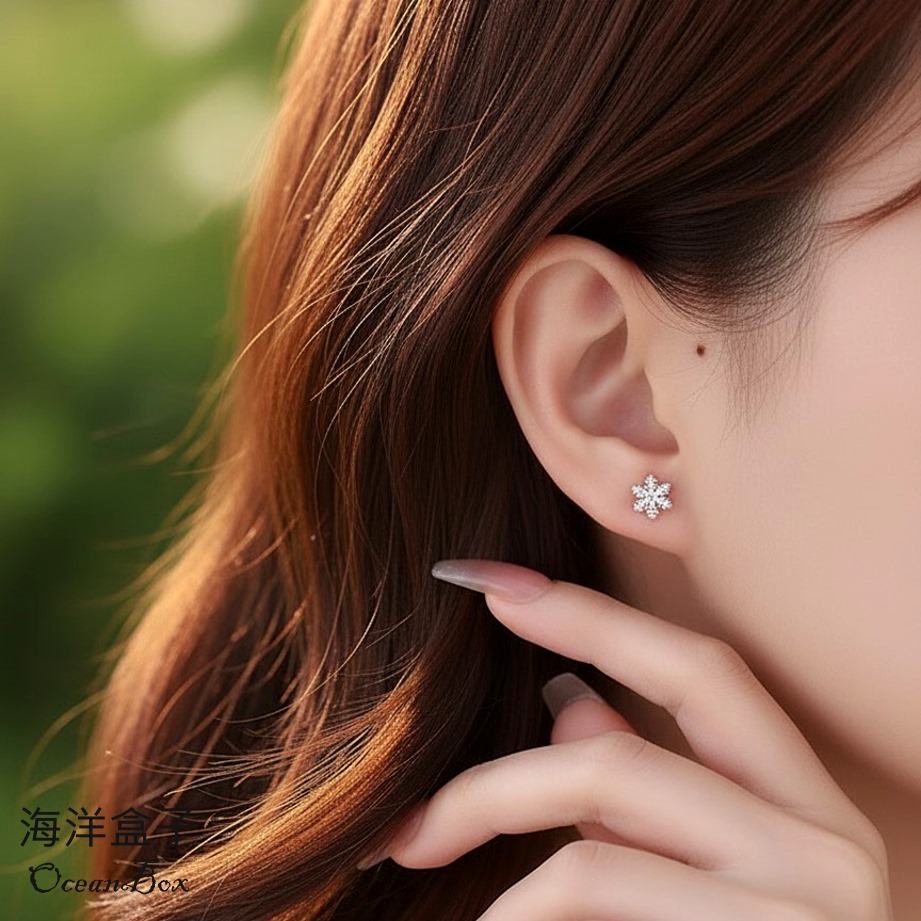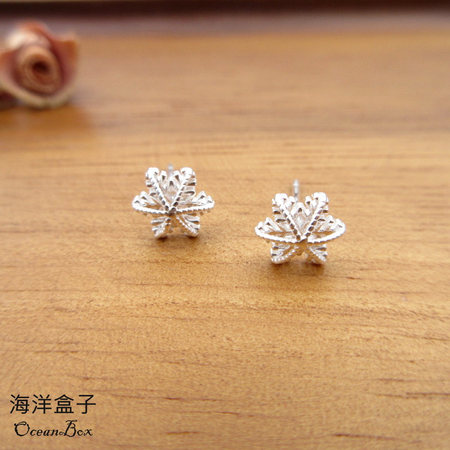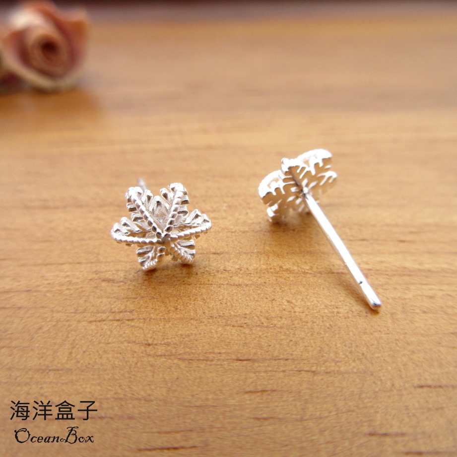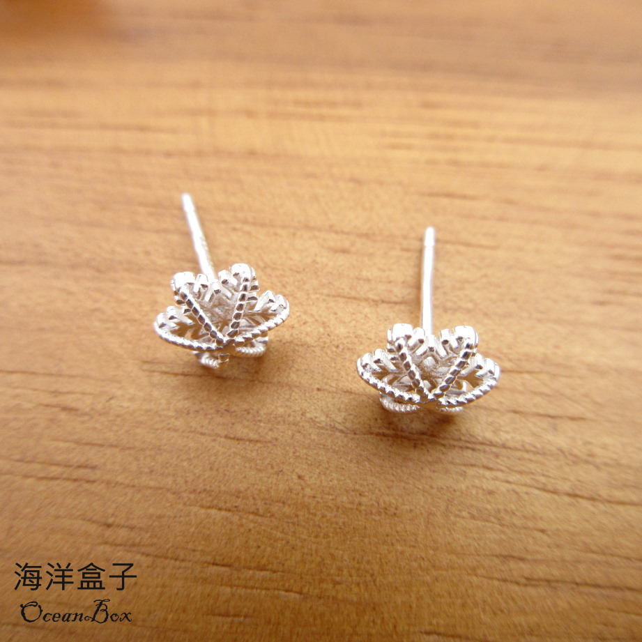 【海洋盒子】立體感簍空雪花S999純耳環(貼耳耳環.交換禮物)
