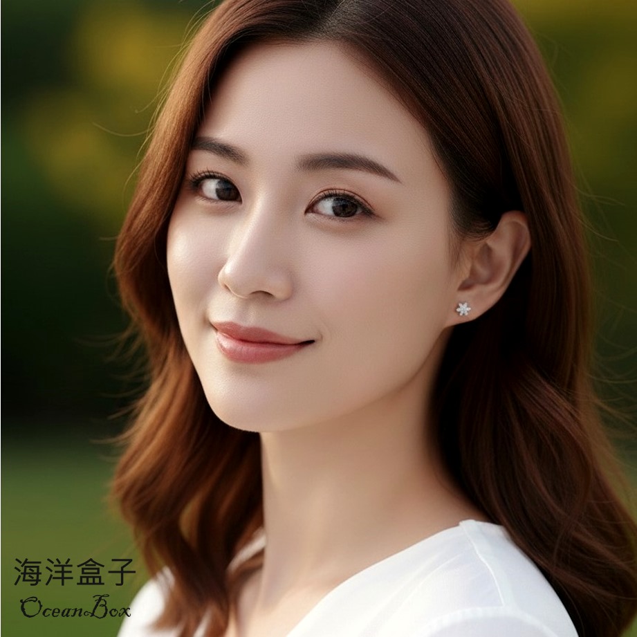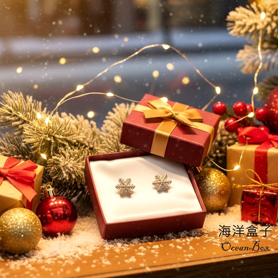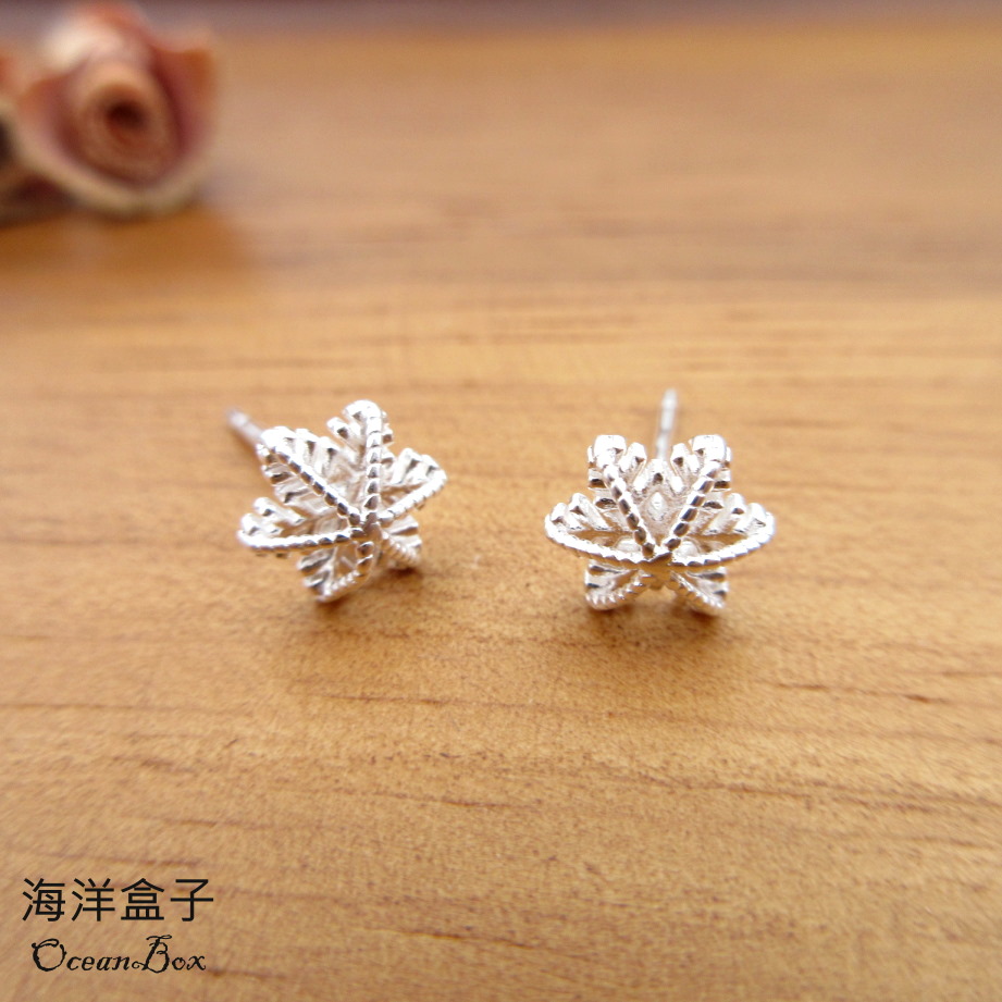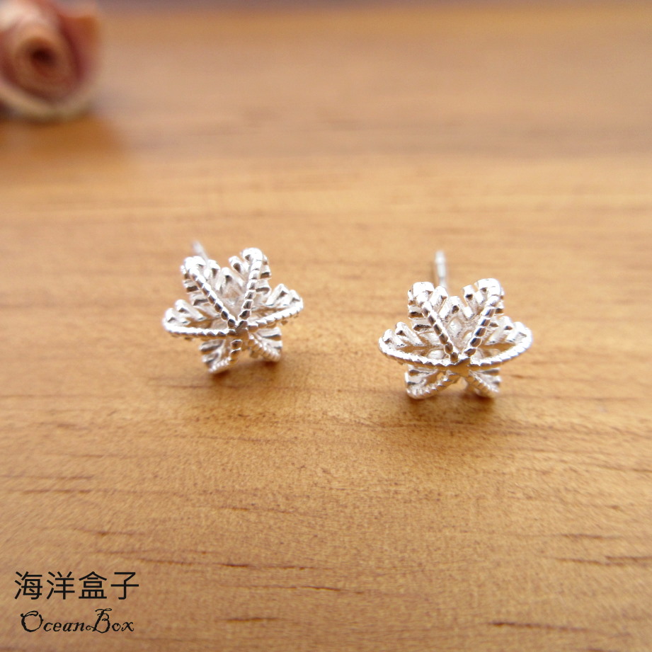 【海洋盒子】立體感簍空雪花S999純耳環(貼耳耳環.交換禮物)