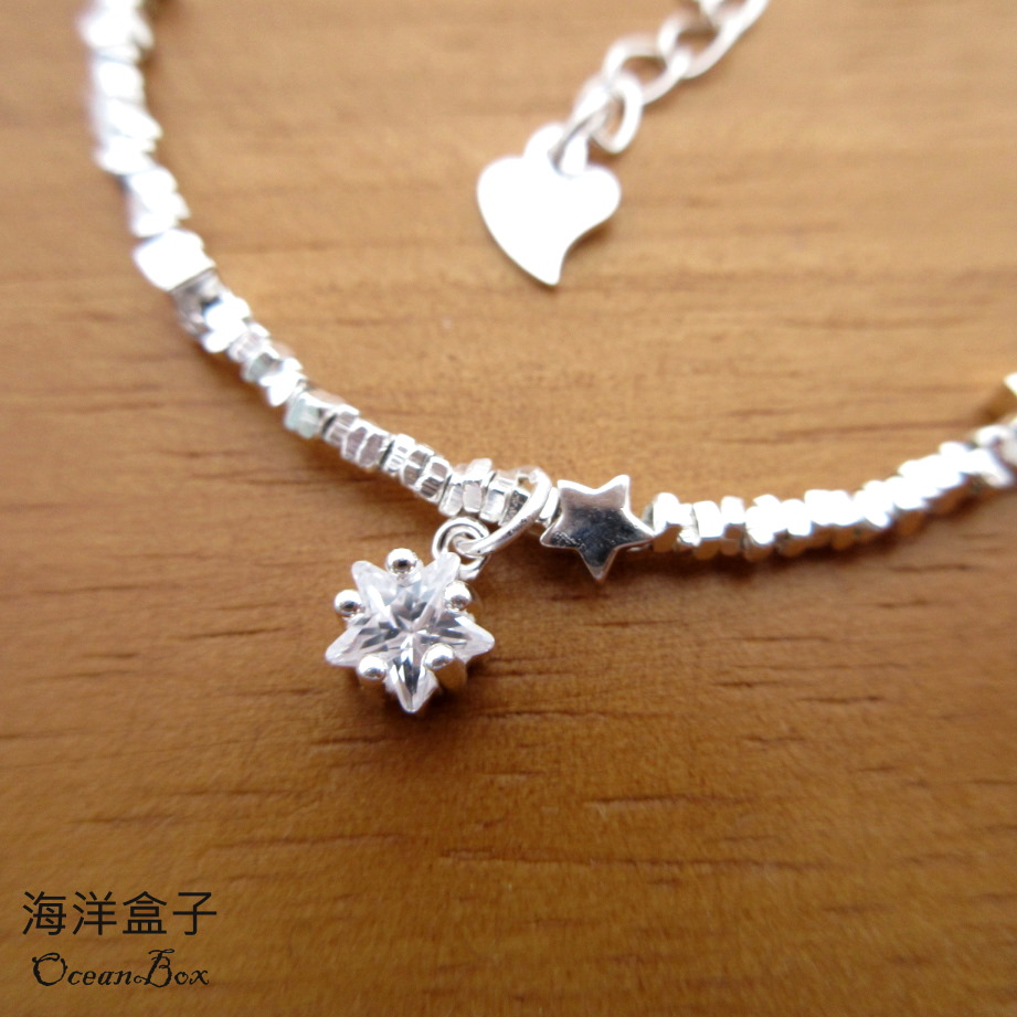 【海洋盒子】閃亮碎銀子星星S999足銀純銀手鍊(女用手鍊.聖誕禮物.交換禮物)