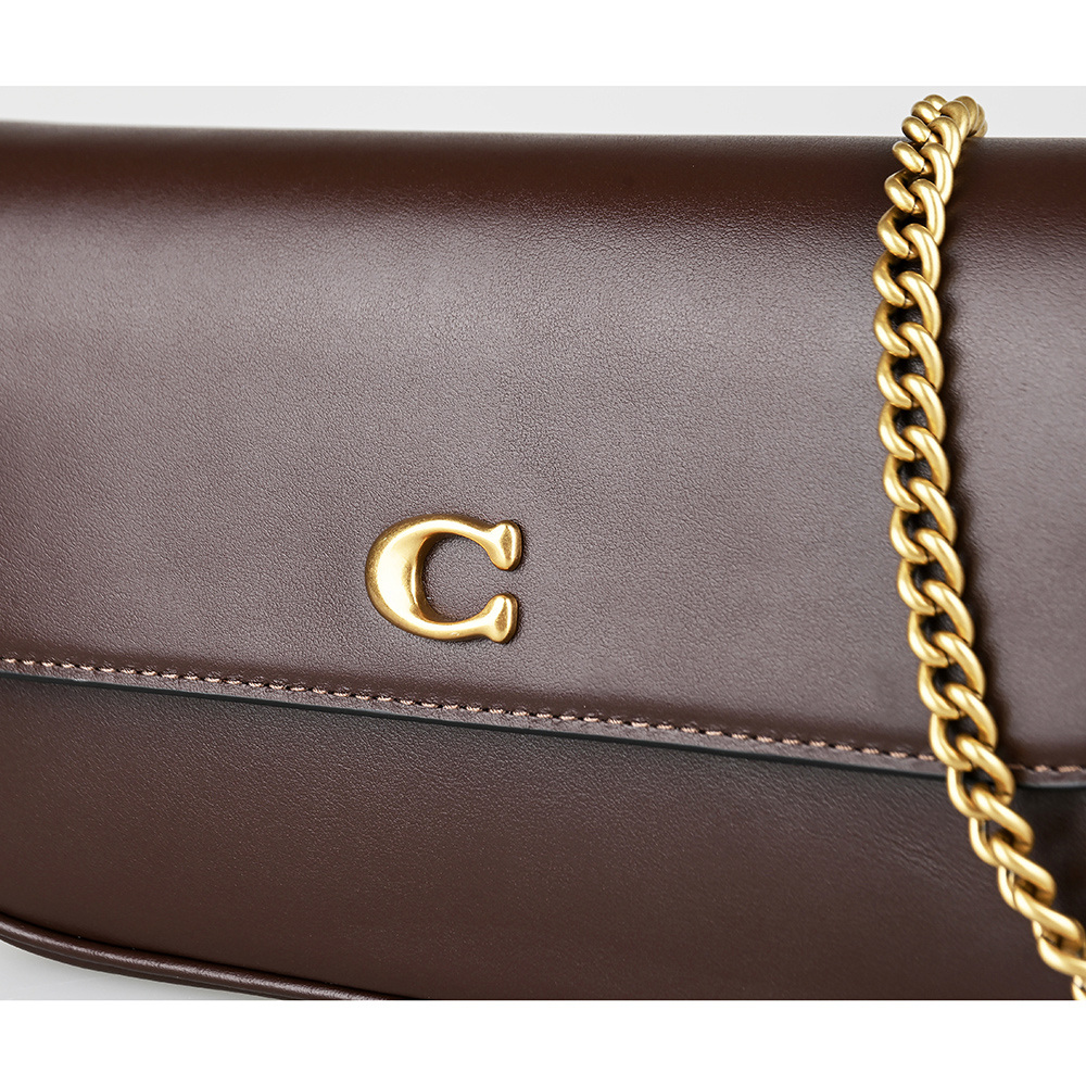 【COACH】COACH BROOK 翻蓋斜背手袋/肩背手提鏈條包(小/楓葉褐)