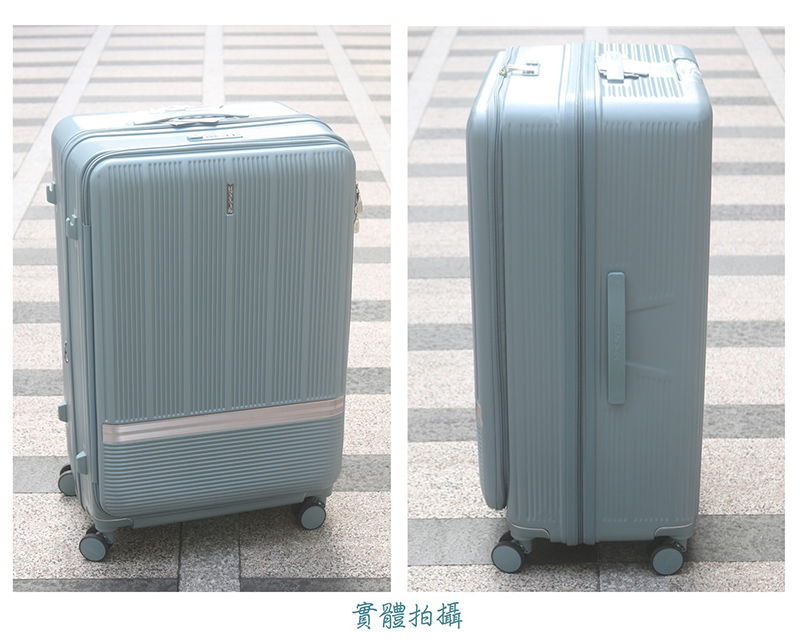 【Batolon 寶龍】100%純PC前開式開合95%防爆拉鍊行李箱(淺灰藍/大容量/防爆/PC)