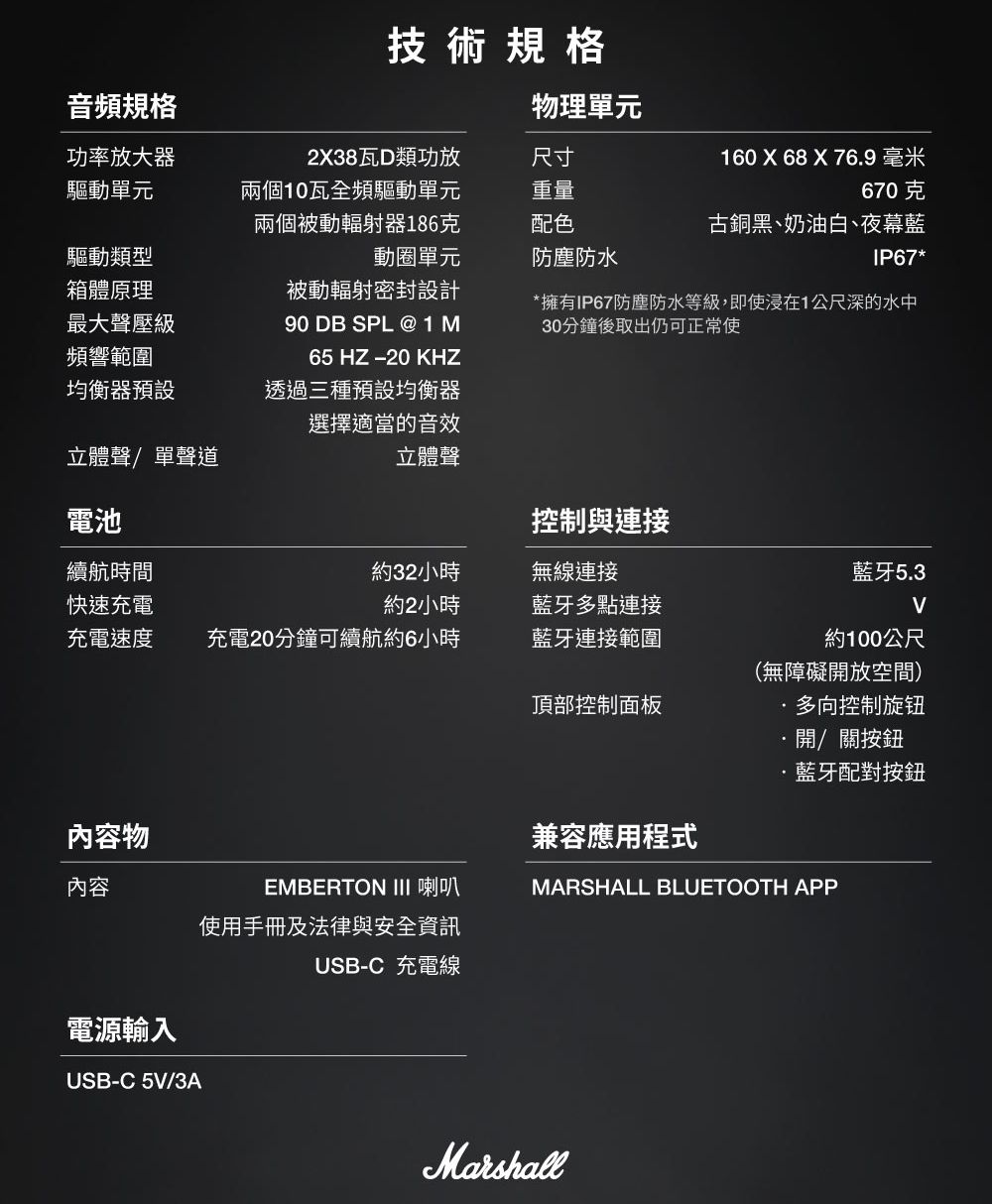 【Marshall】藍牙喇叭 家用(Emberton III)