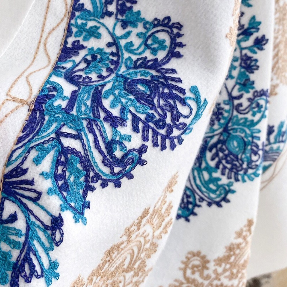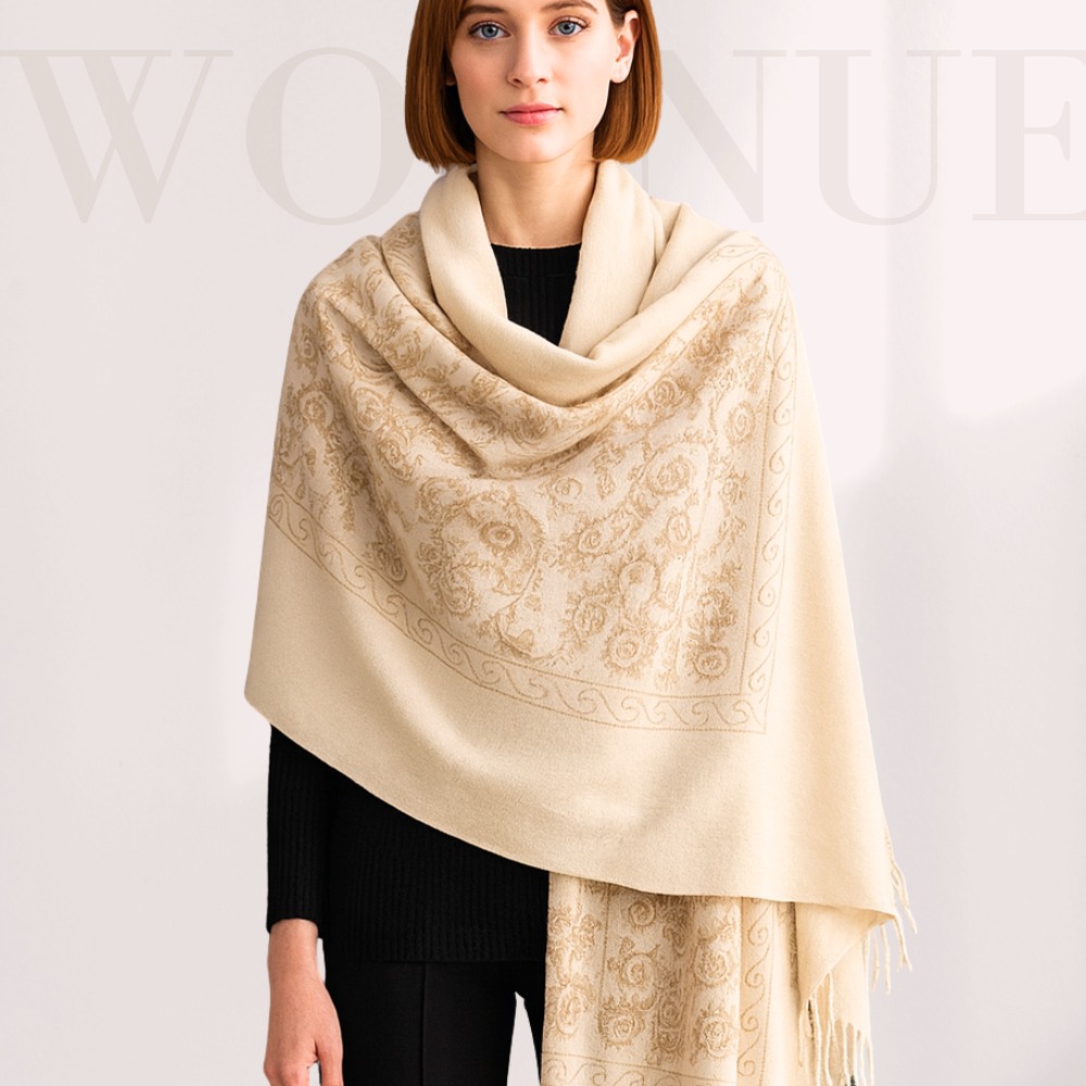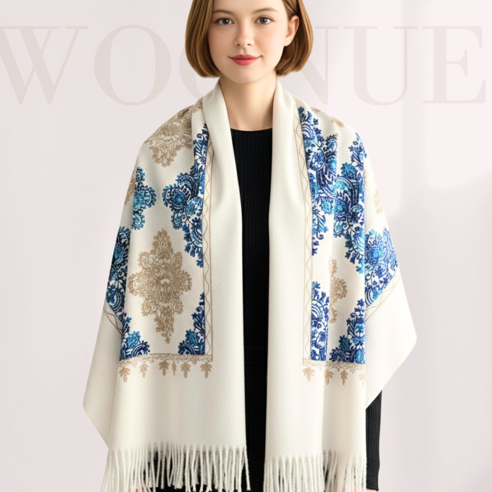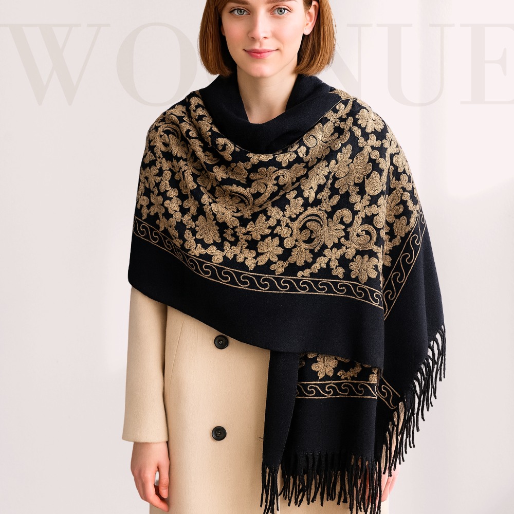 【WOONUE】杜拜貴婦專櫃刺繡柔羊毛絨質感親膚寬版時尚斗篷圍巾冷氣披肩(女友老婆媽媽情人生日聖誕禮物)