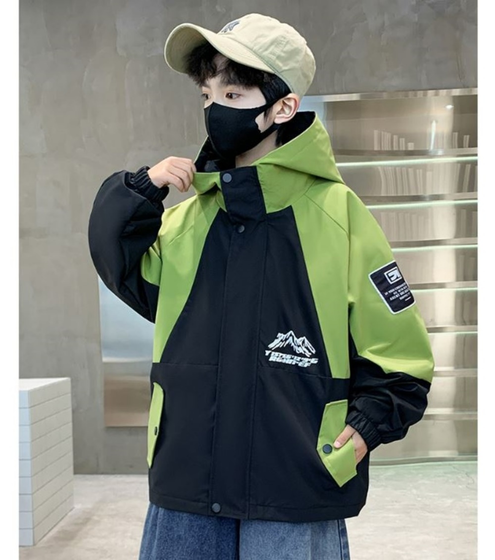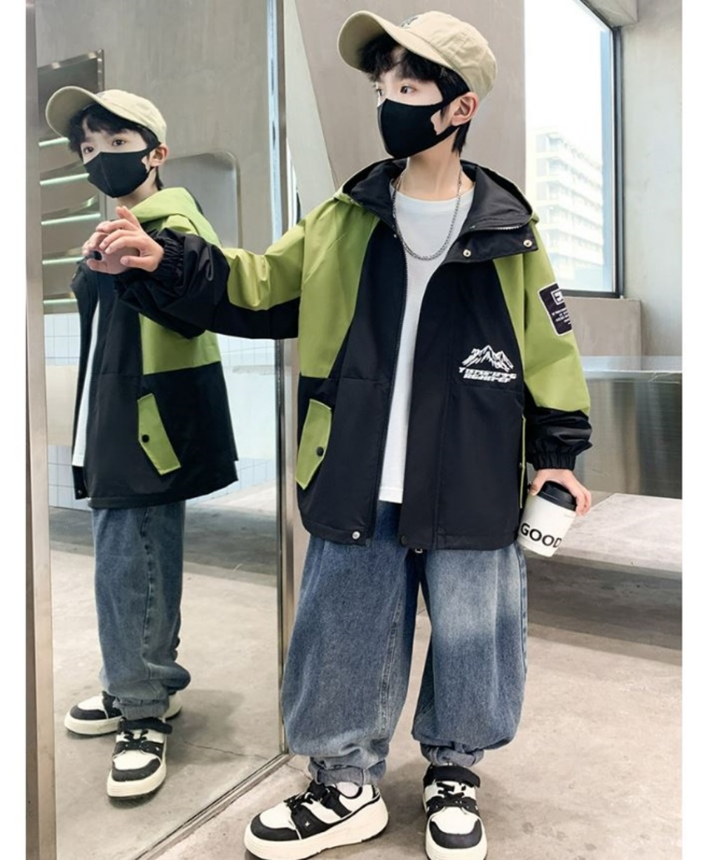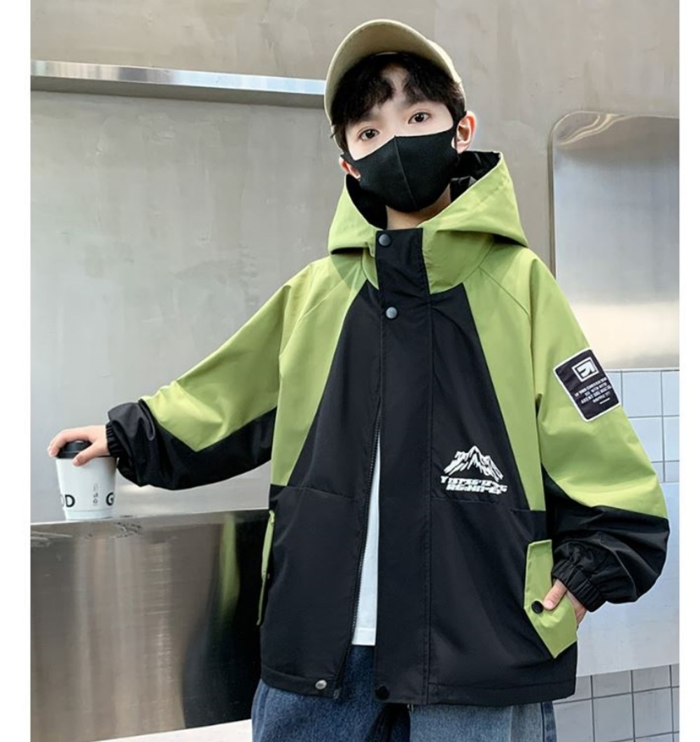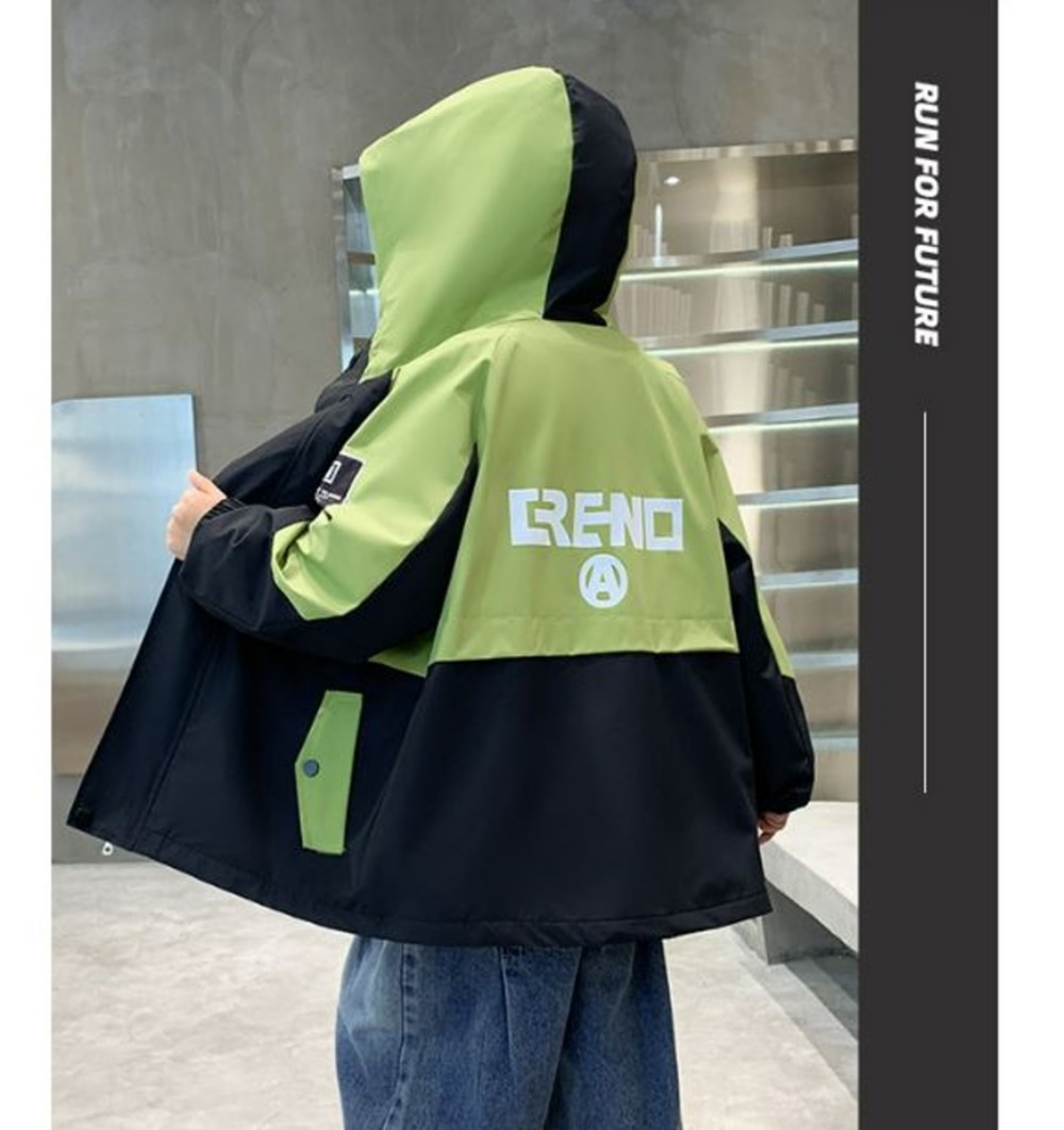 【UniKids】秋中大童裝長袖連帽外套 撞色衝鋒衣夾克 男大童裝 VP9918(綠 黑)