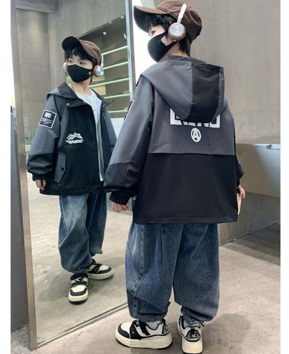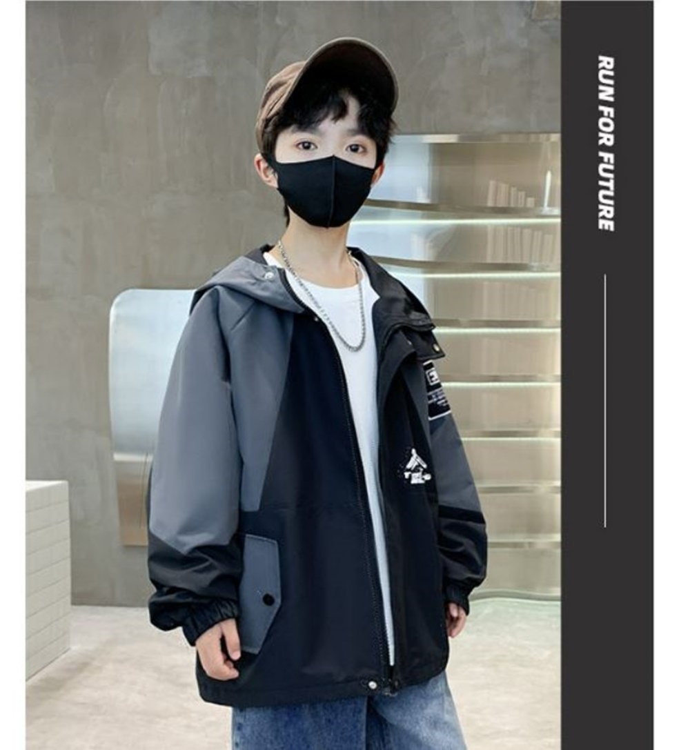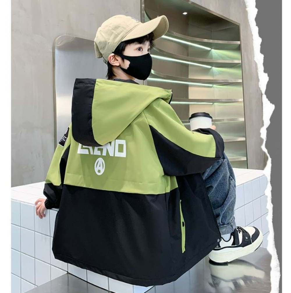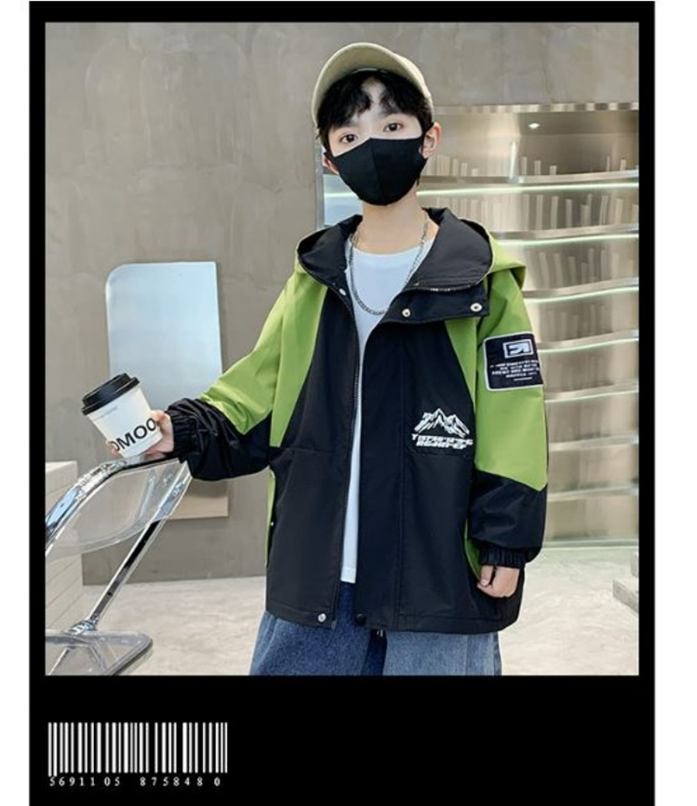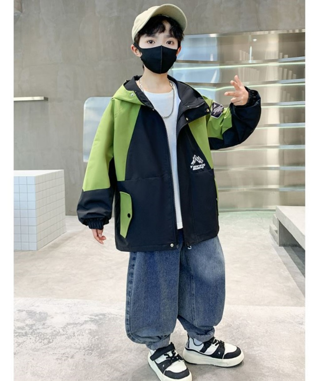 【UniKids】秋中大童裝長袖連帽外套 撞色衝鋒衣夾克 男大童裝 VP9918(綠 黑)