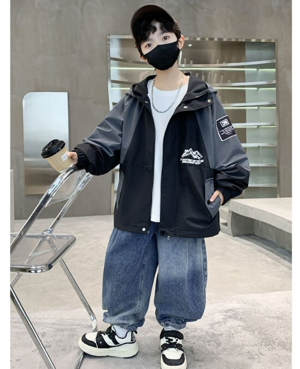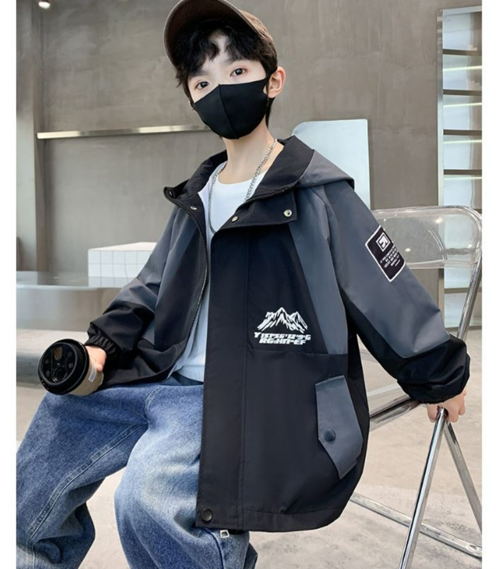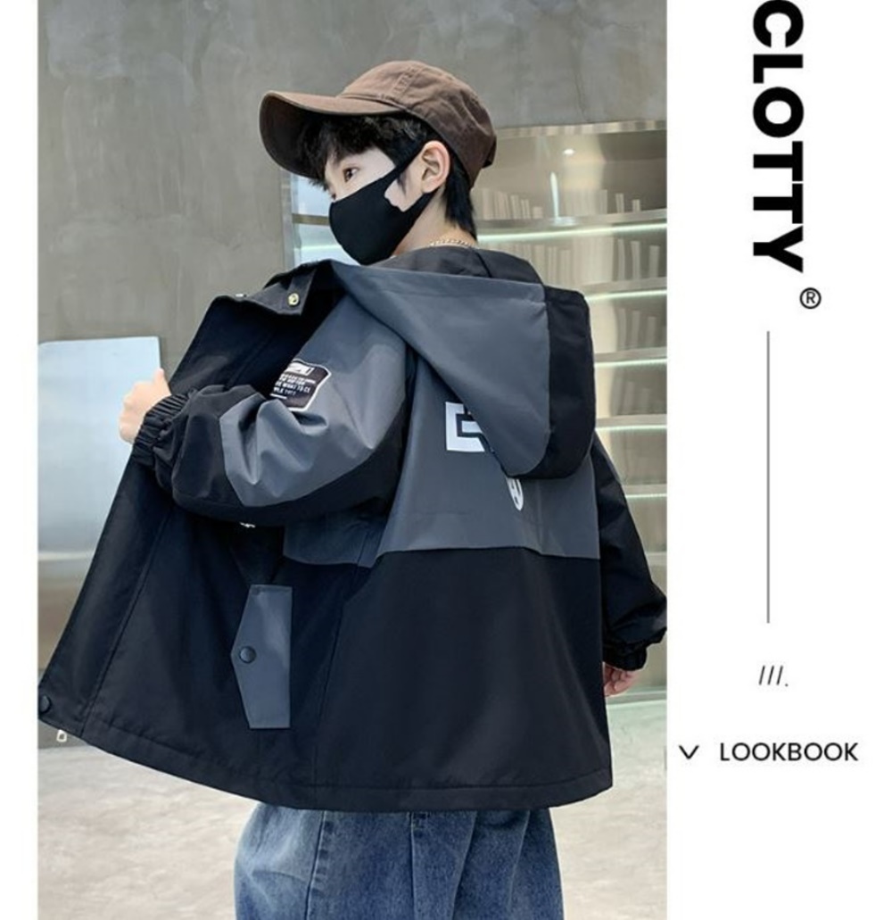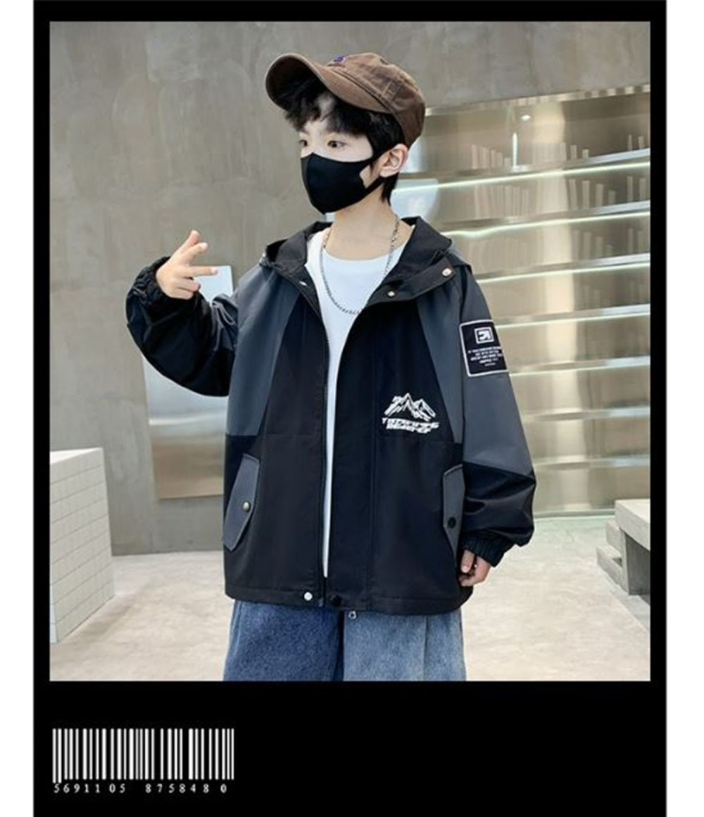 【UniKids】秋中大童裝長袖連帽外套 撞色衝鋒衣夾克 男大童裝 VP9918(綠 黑)
