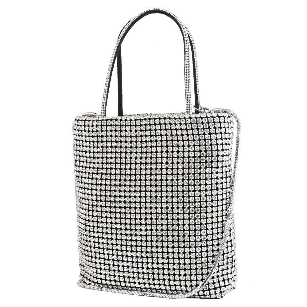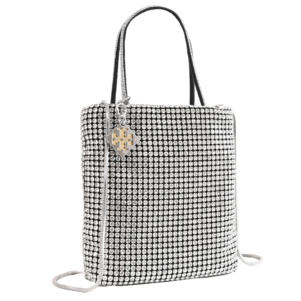 【TORY BURCH】經典雙T吊飾璀璨滿版水鑽迷你手袋包兩用包(銀鑽)