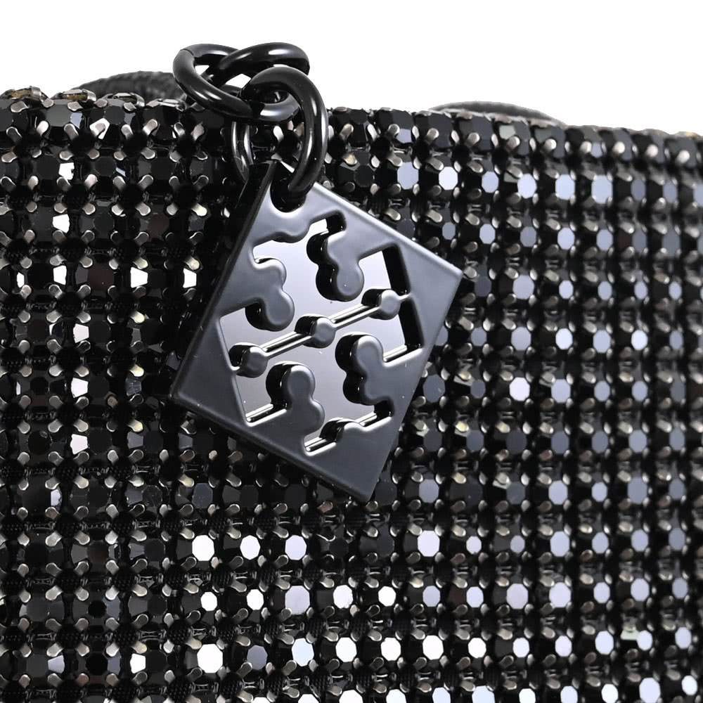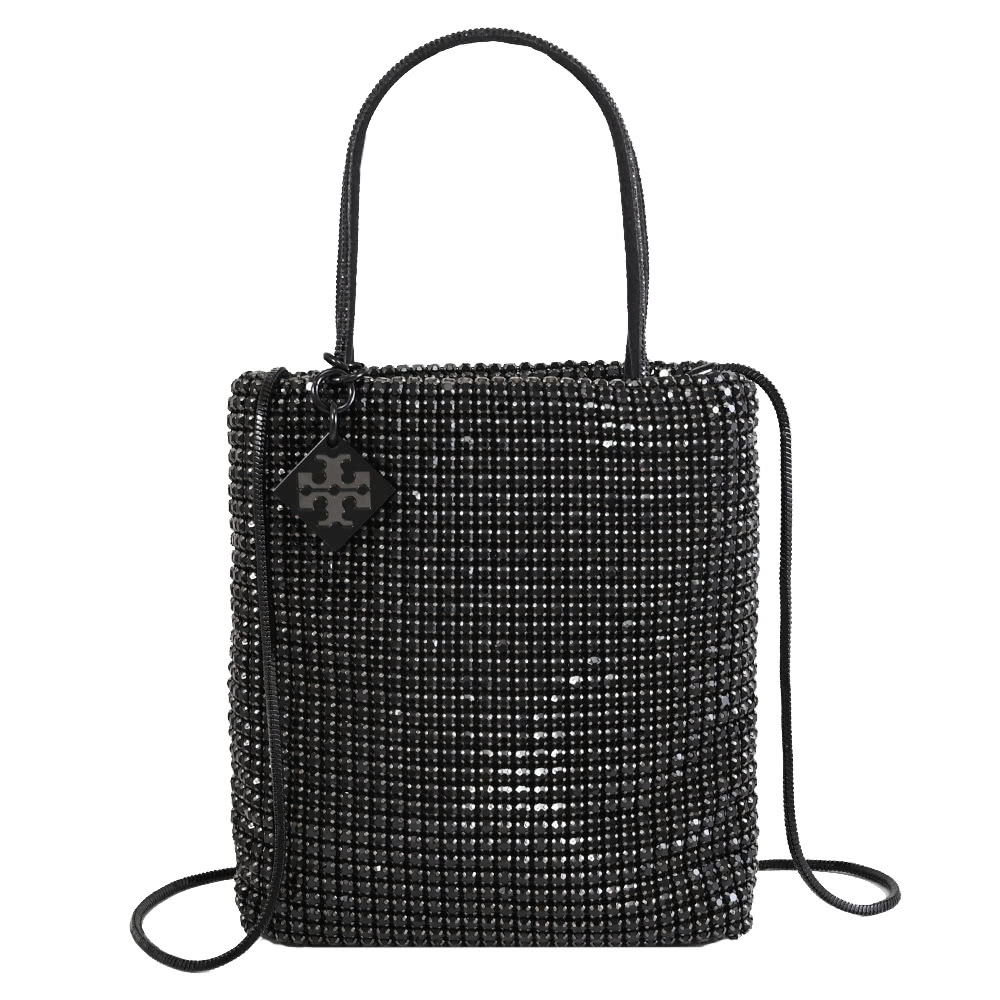 【TORY BURCH】經典雙T吊飾璀璨滿版水鑽迷你手袋包兩用包(銀鑽)