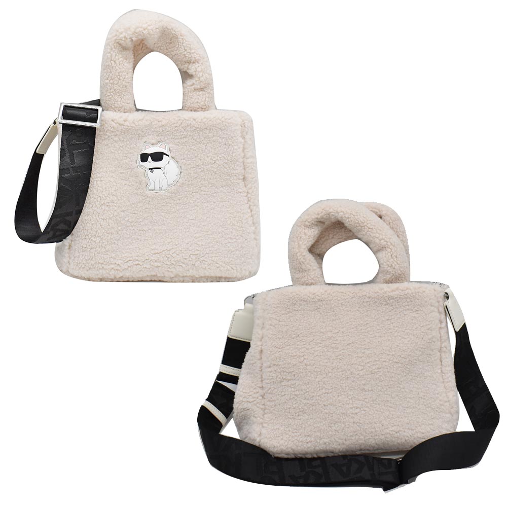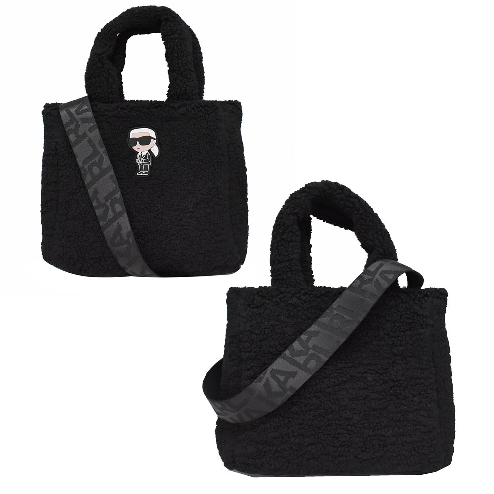 【KARL LAGERFELD 卡爾】卡爾老佛爺毛料手提包斜背包手袋