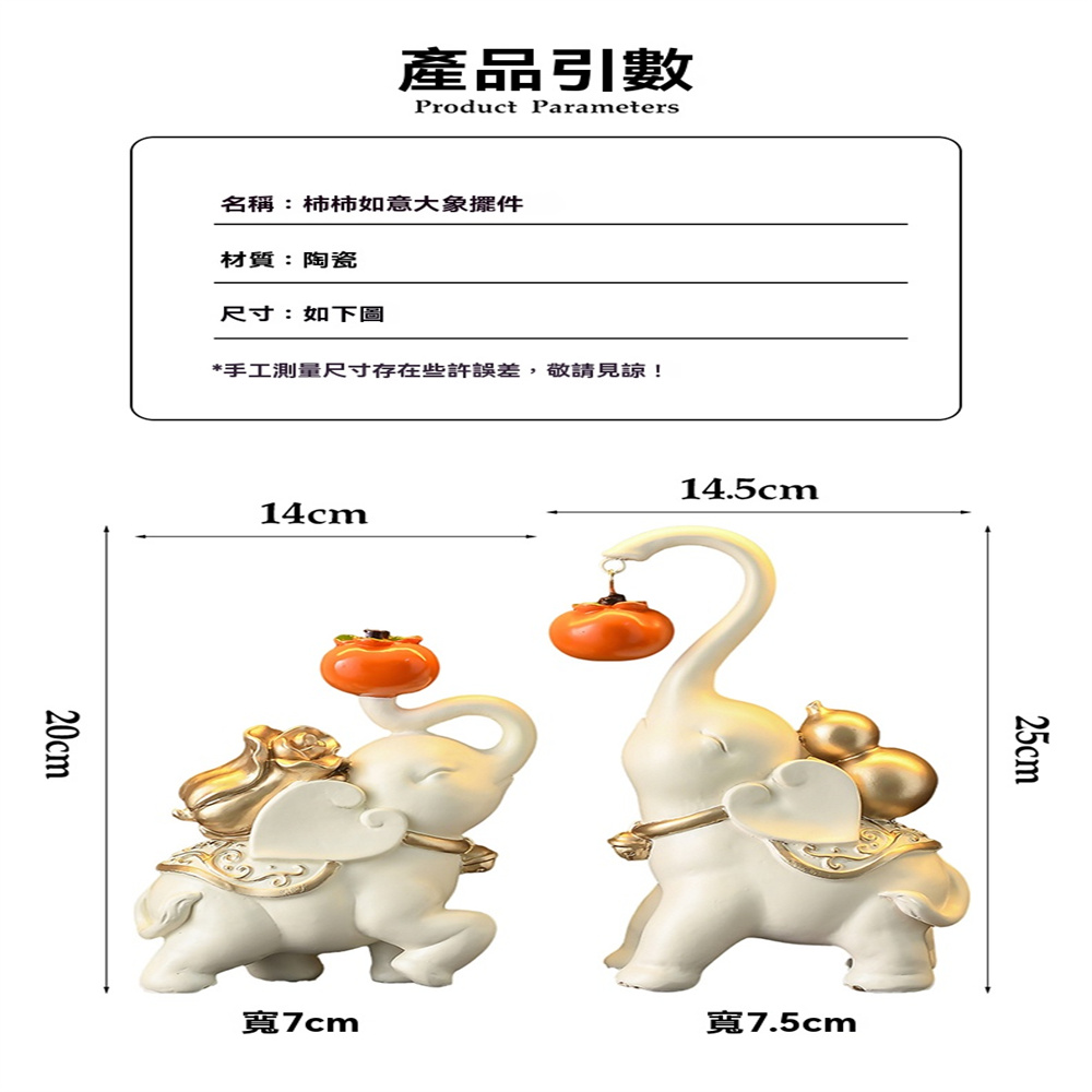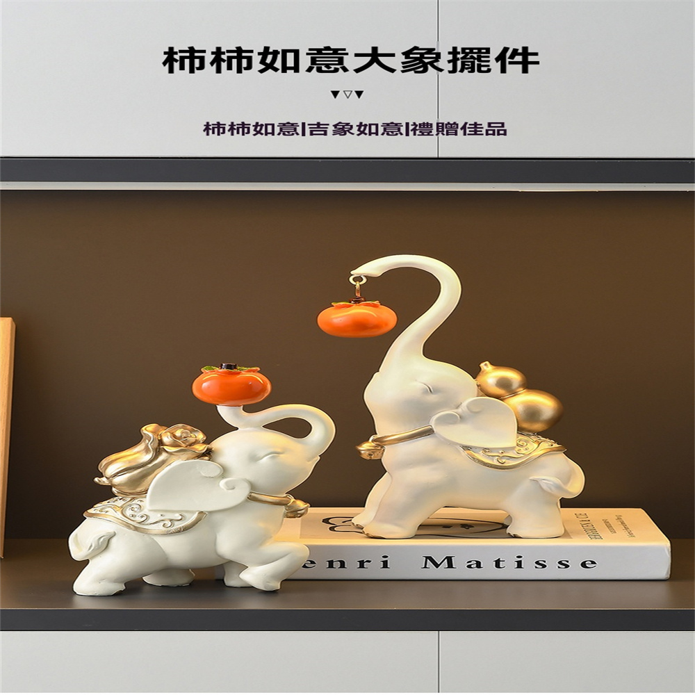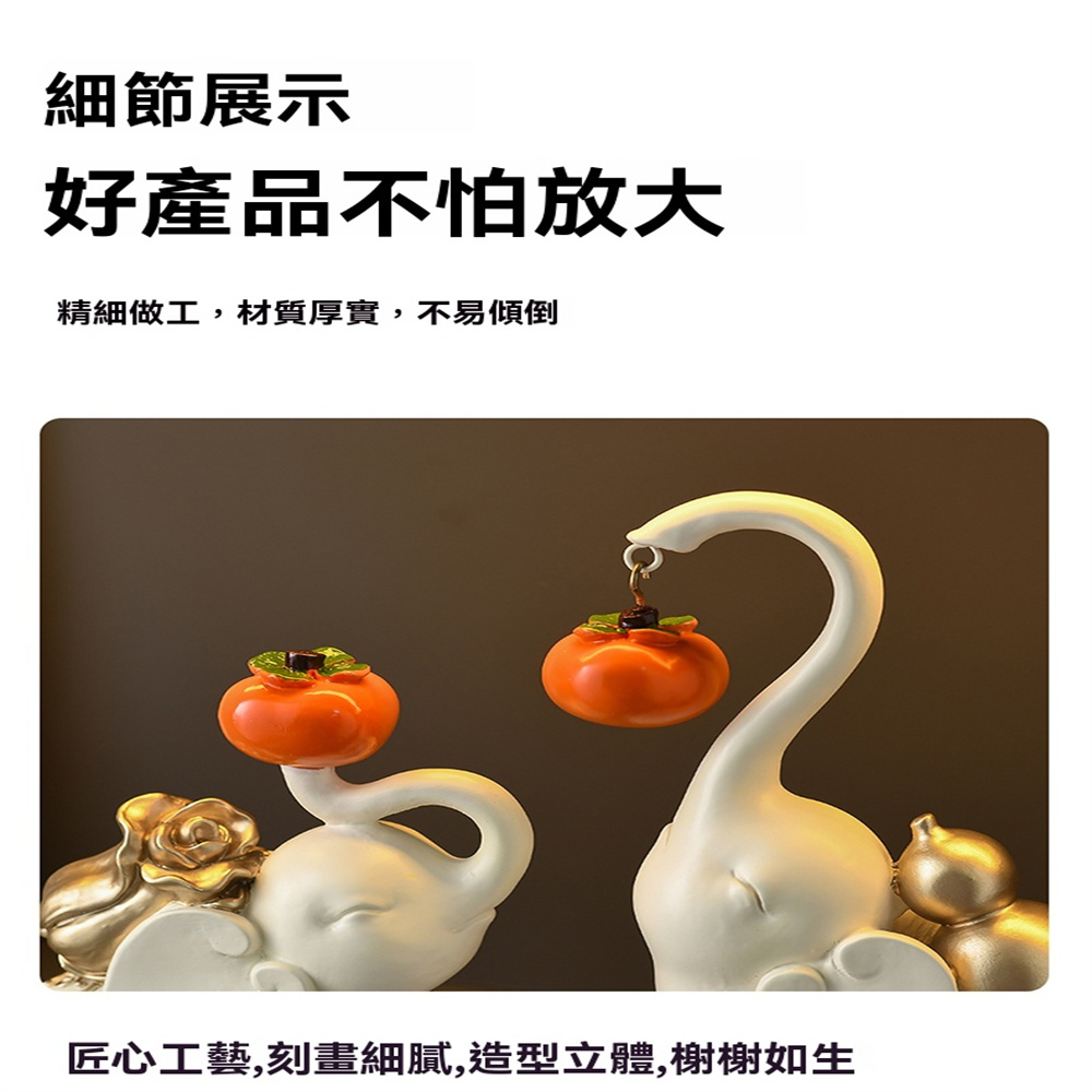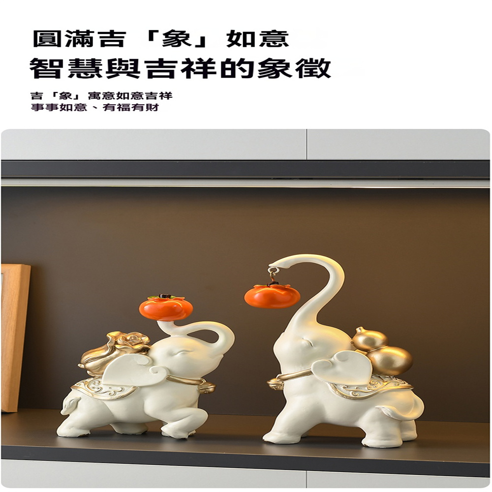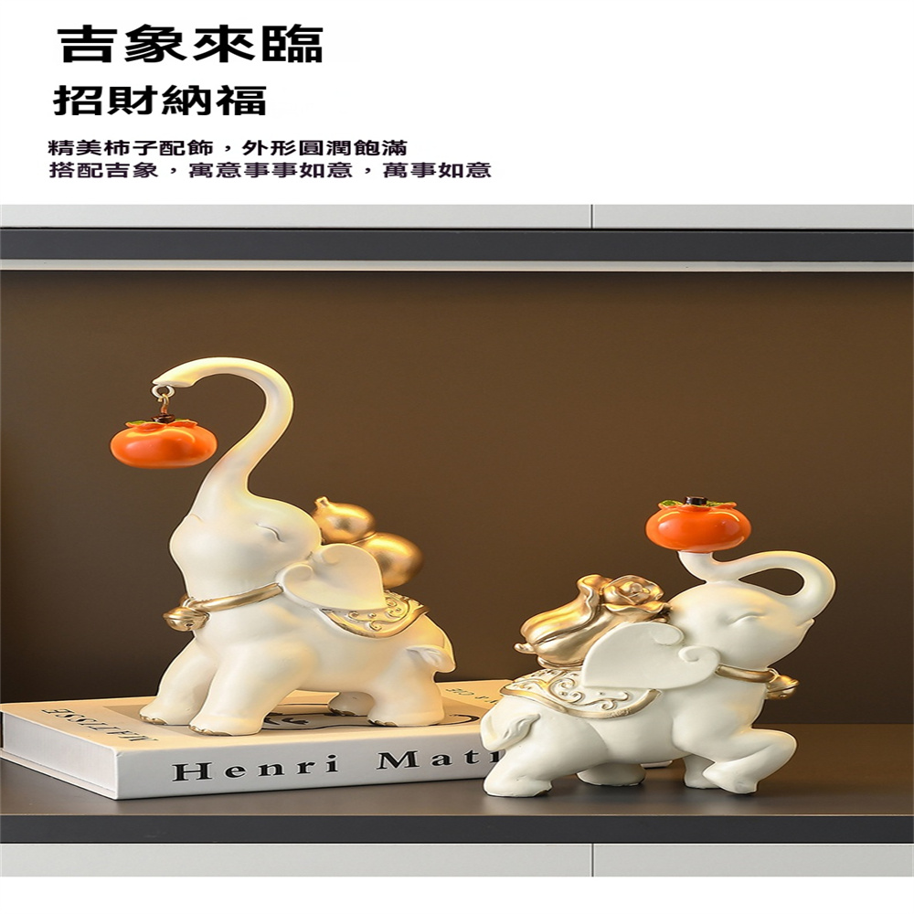 【超微米】柿柿如意大象擺件 招財 客廳電視櫃酒櫃裝飾品 喬遷新居禮品(柿柿如意招財擺件 禮盒裝)
