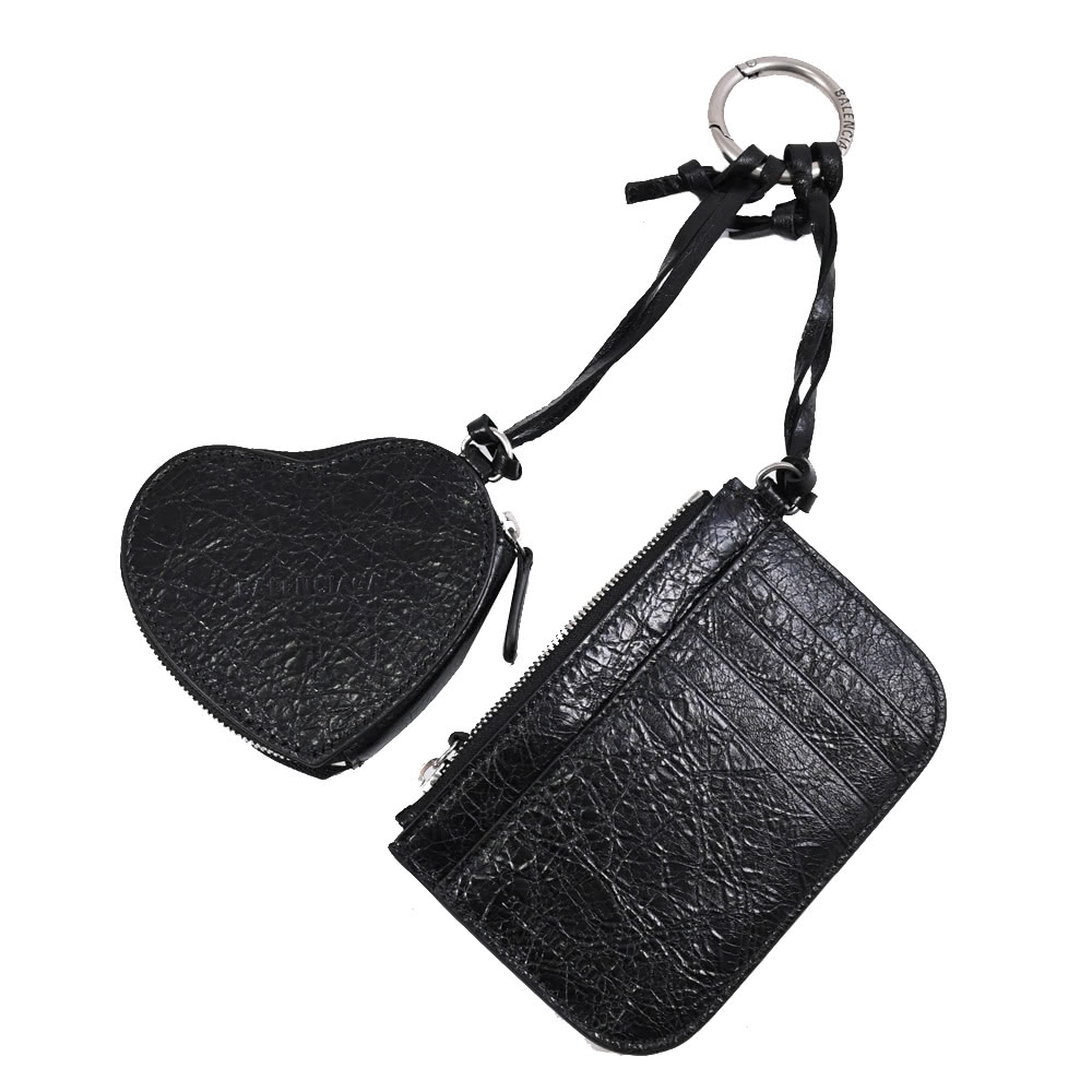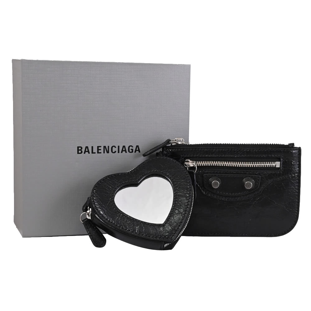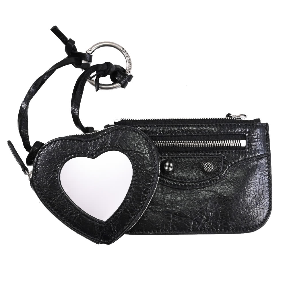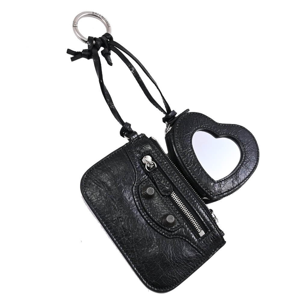 《BALENCIAGA》深受不少國內外名人青睞的品牌,其魅力在台灣持續燃燒,是許多人踏入名牌世界的第一選擇,熱銷經典款再創新設計,獨特包型設計更顯高貴及優雅;專櫃商品,專櫃愛心零錢包/吊飾,採用小羊皮材質搭配經典鉚釘飾,零錢包(含5卡+1拉鍊袋)+愛心鏡子零錢袋,精緻小巧,可輕易放入各種小包或掛於包包上,實用性設計便於攜帶。