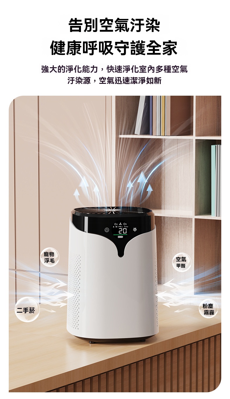 內建千萬負離子淨化 淨化高效