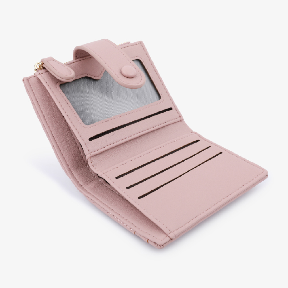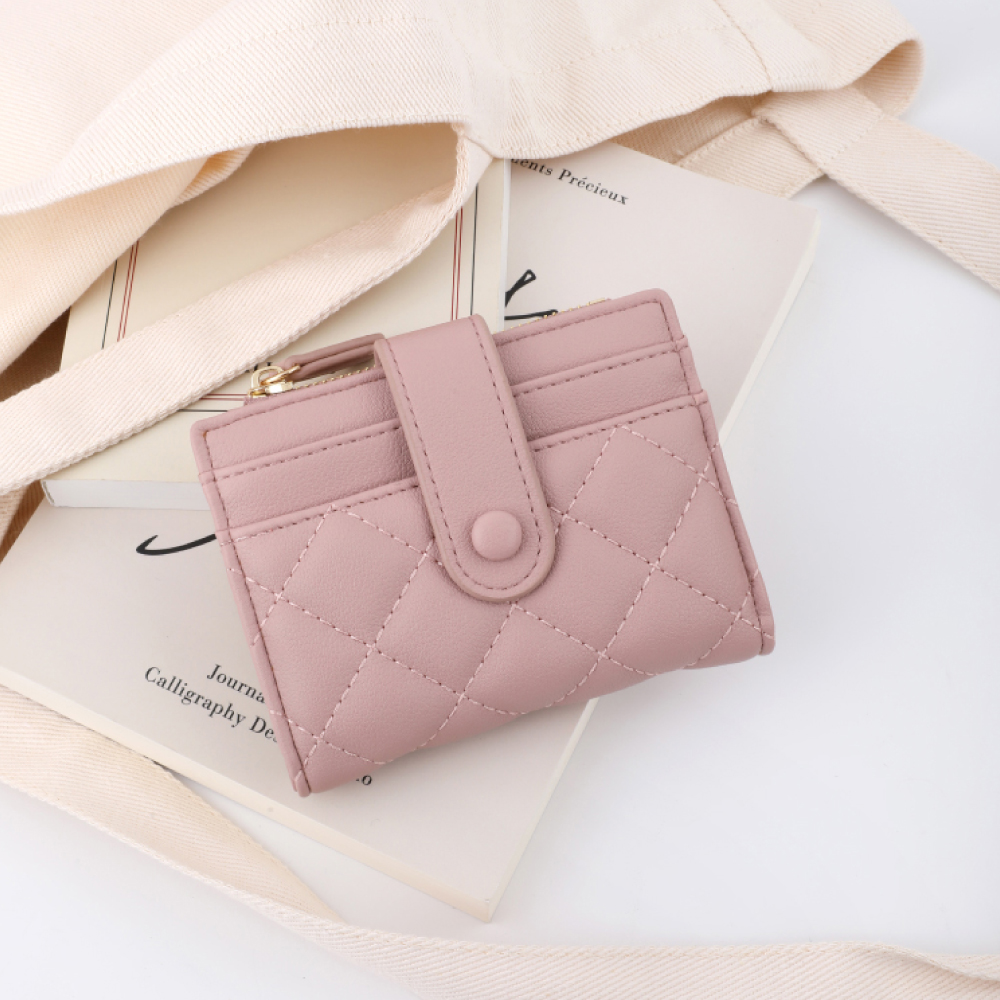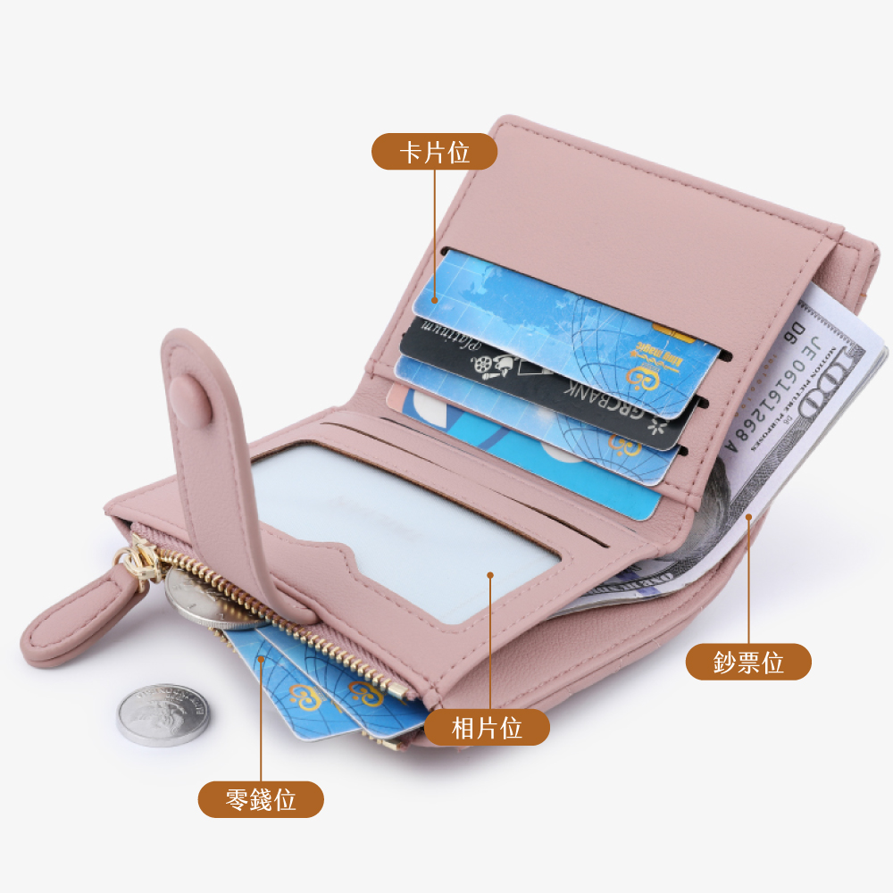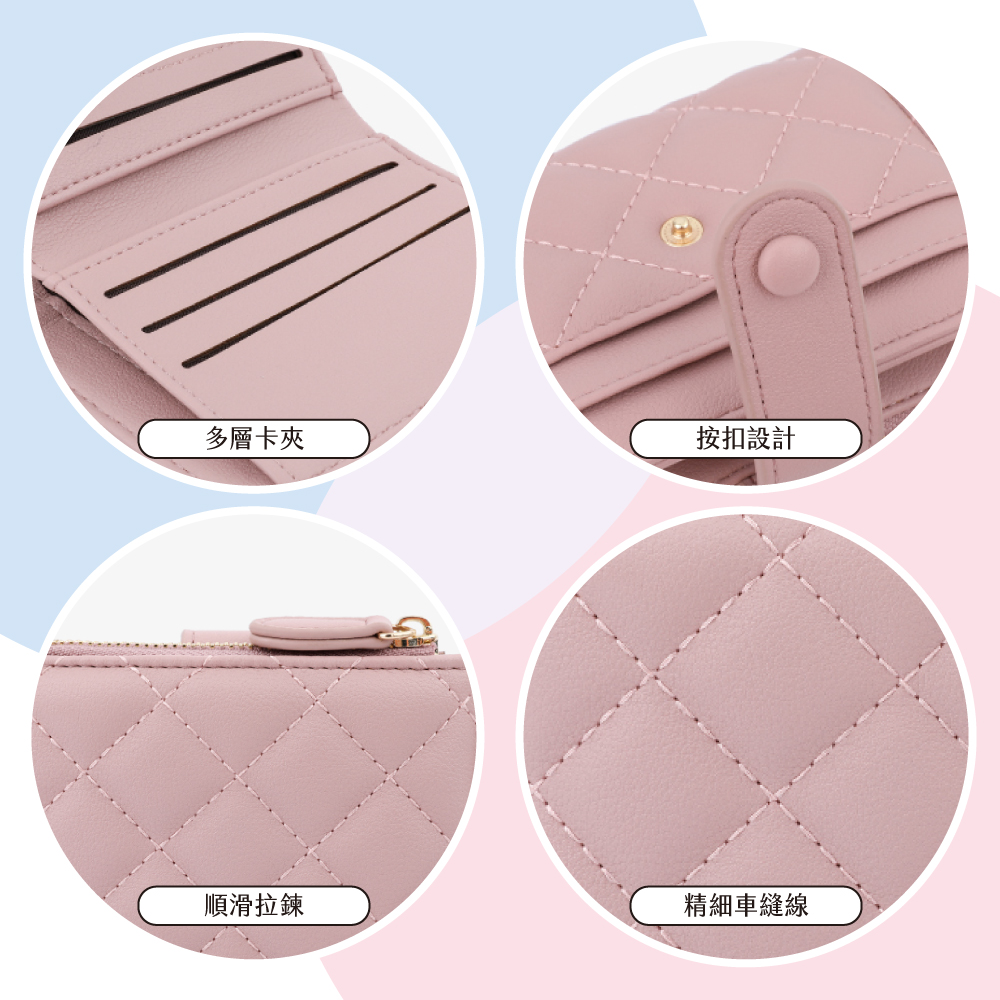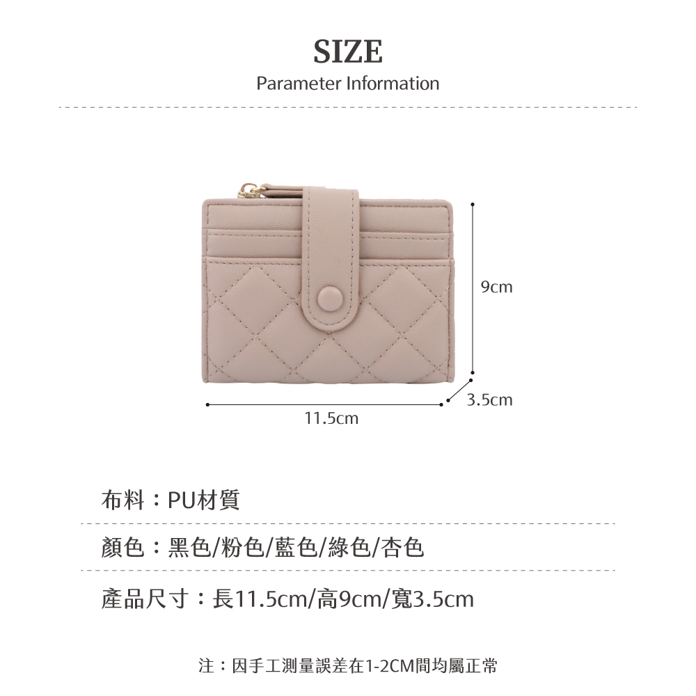【Haoner】典雅方格二折短夾(女夾 壓扣短夾 女錢包 短夾 皮夾)