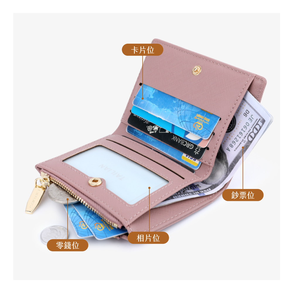 【Haoner】經典純色短夾 女夾(二折短夾 短夾 女錢包 壓扣短夾)