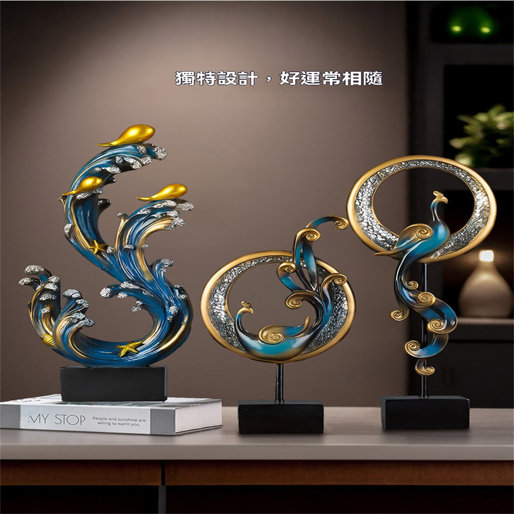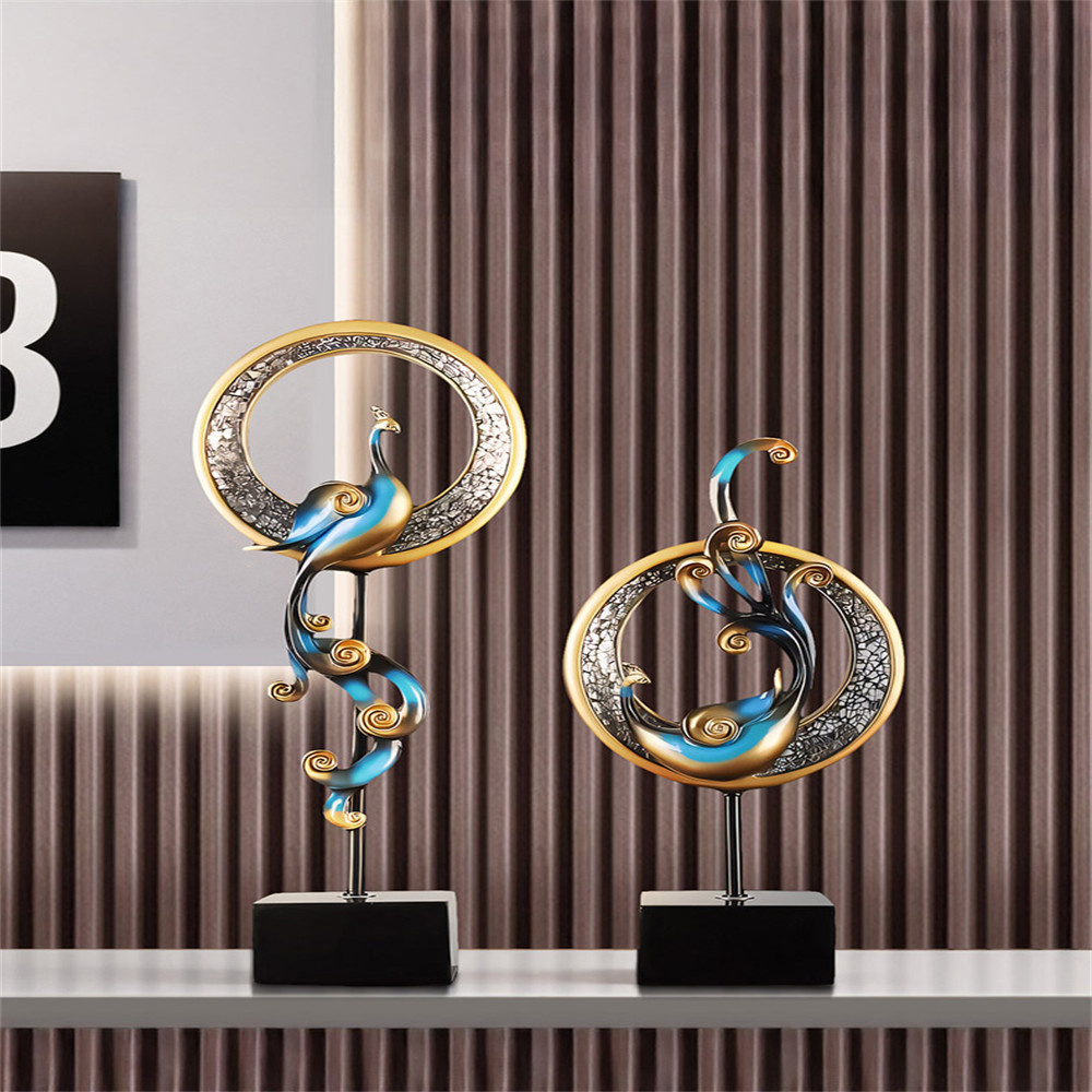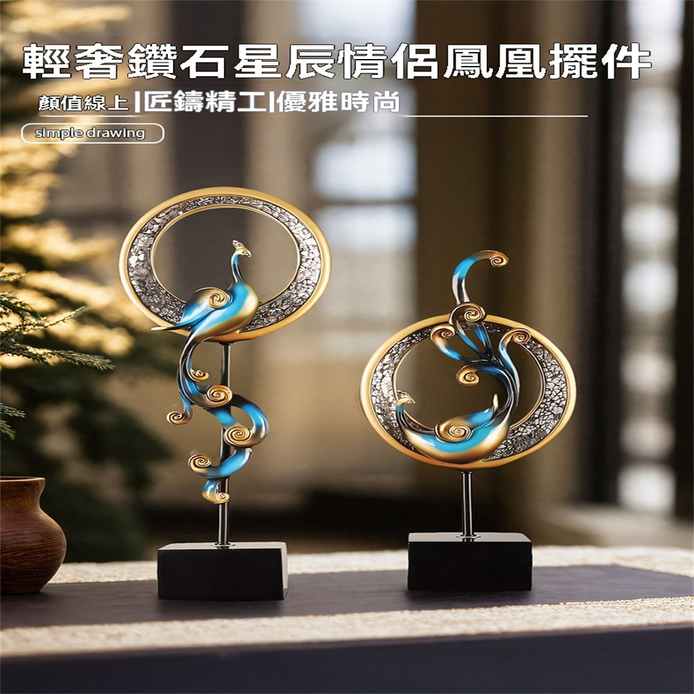 【超微米】鳳凰擺件一對 客廳玄關酒櫃裝飾品 家居創意鳳凰擺設 喬遷開業送禮(風水招財擺件)
