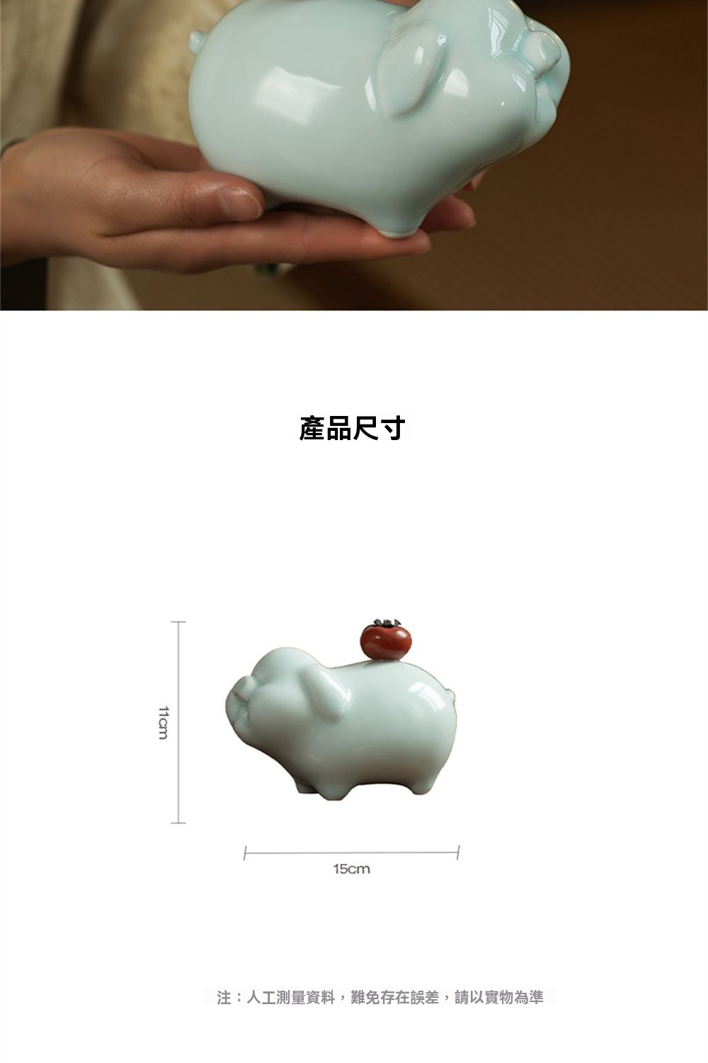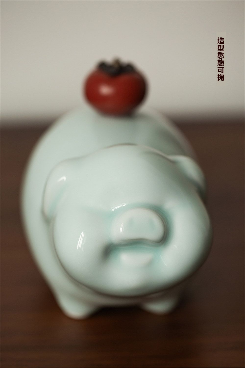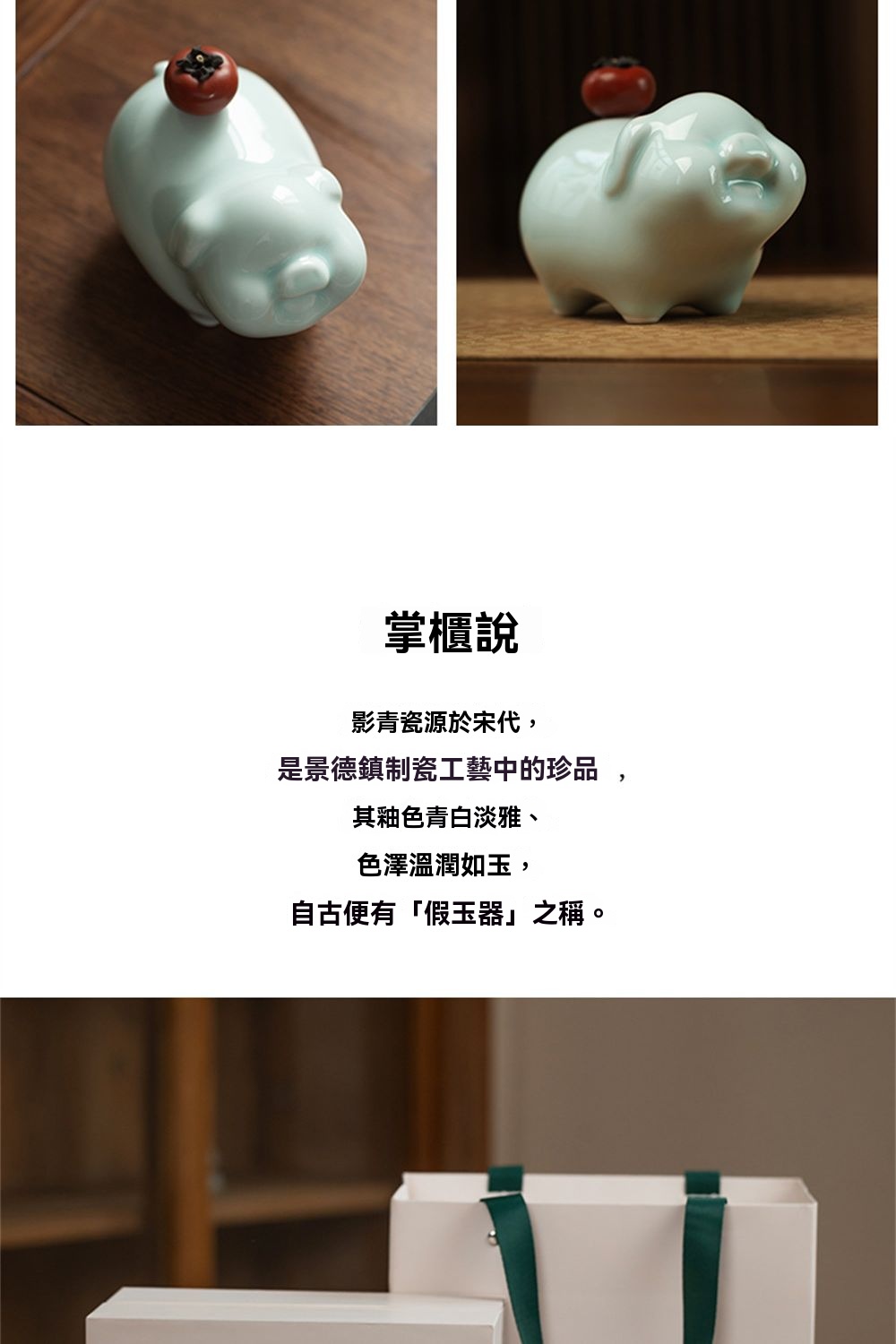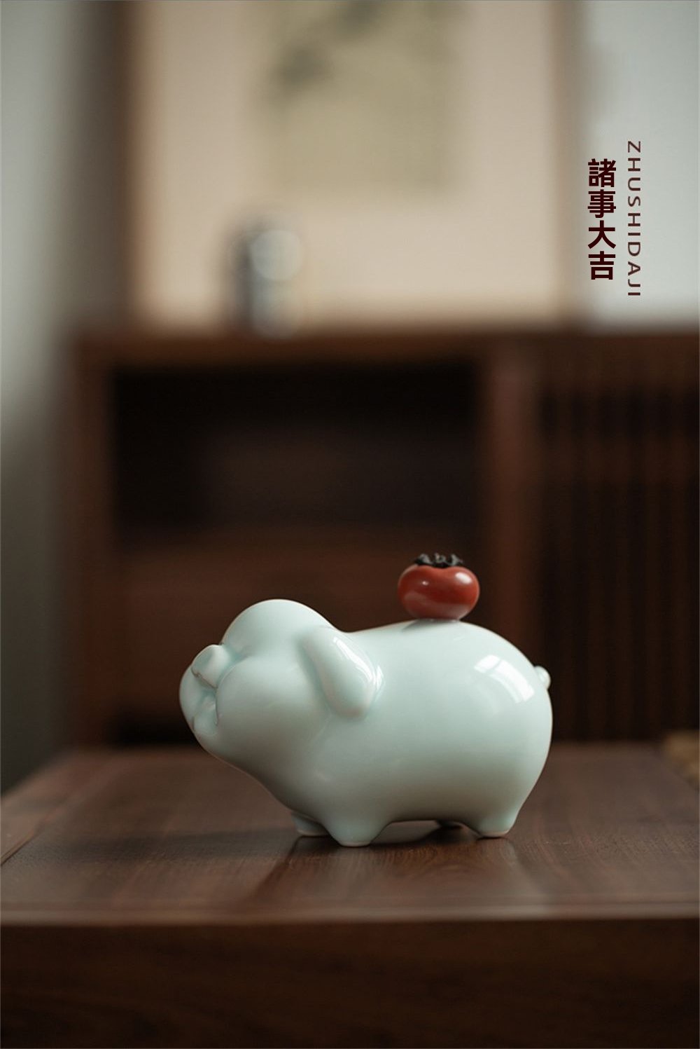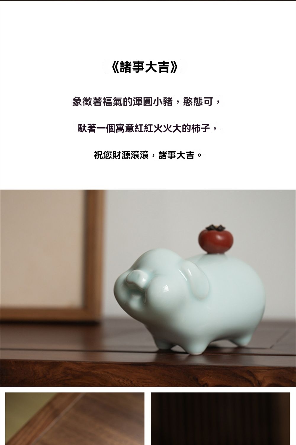 【新川】諸事大吉陶瓷豬 柿子馱背造型 喬遷新居禮品(辦公室吉祥物 陶瓷豬擺飾 職場好運點綴)