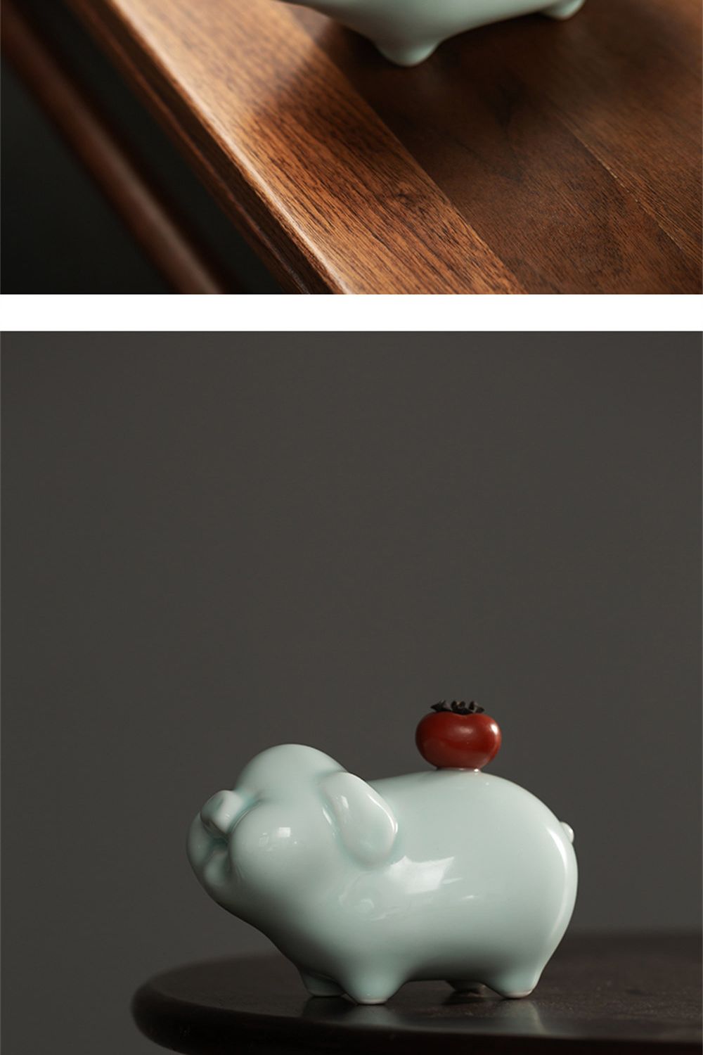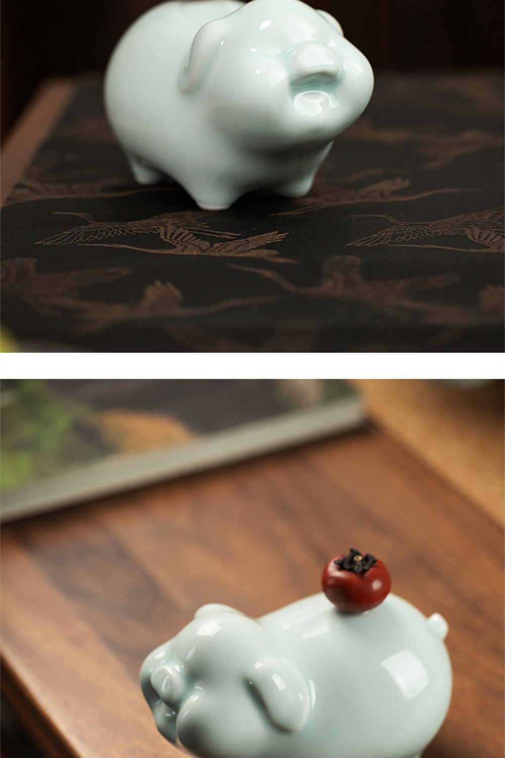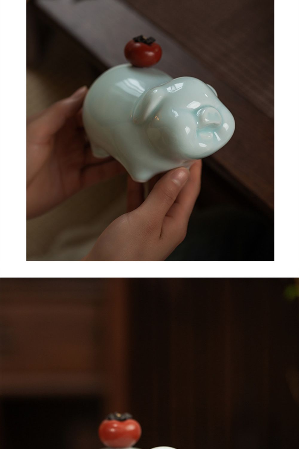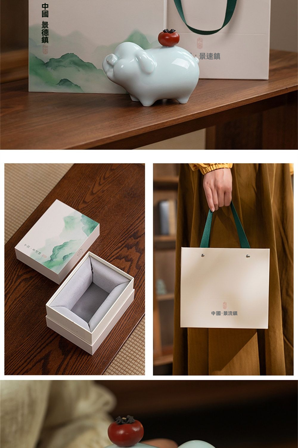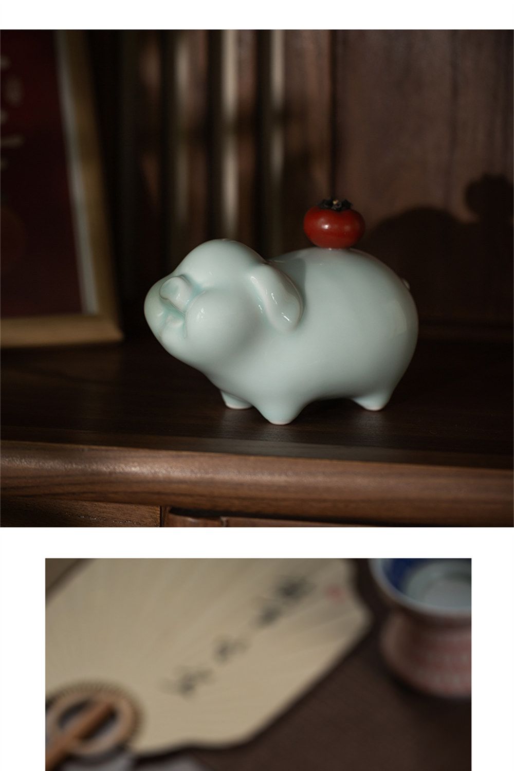【新川】諸事大吉陶瓷豬 柿子馱背造型 喬遷新居禮品(辦公室吉祥物 陶瓷豬擺飾 職場好運點綴)