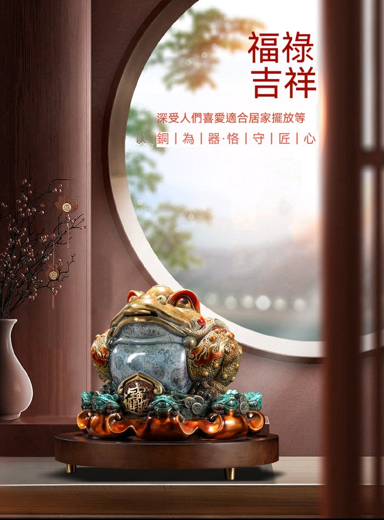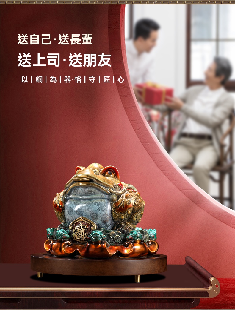 【造物】大銅世家八方來財 金蟾黃銅擺件15*15CM(擺飾 桌面擺飾 開運擺件 喬遷開業禮品)