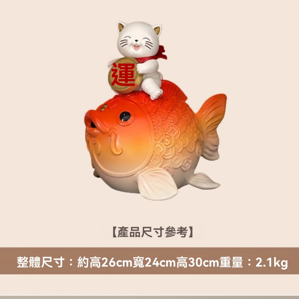 【超微米】鴻運當頭錦鯉招財貓擺件 客廳玄關電視櫃收銀台裝飾品 喬遷開業禮物(22*20*24CM)