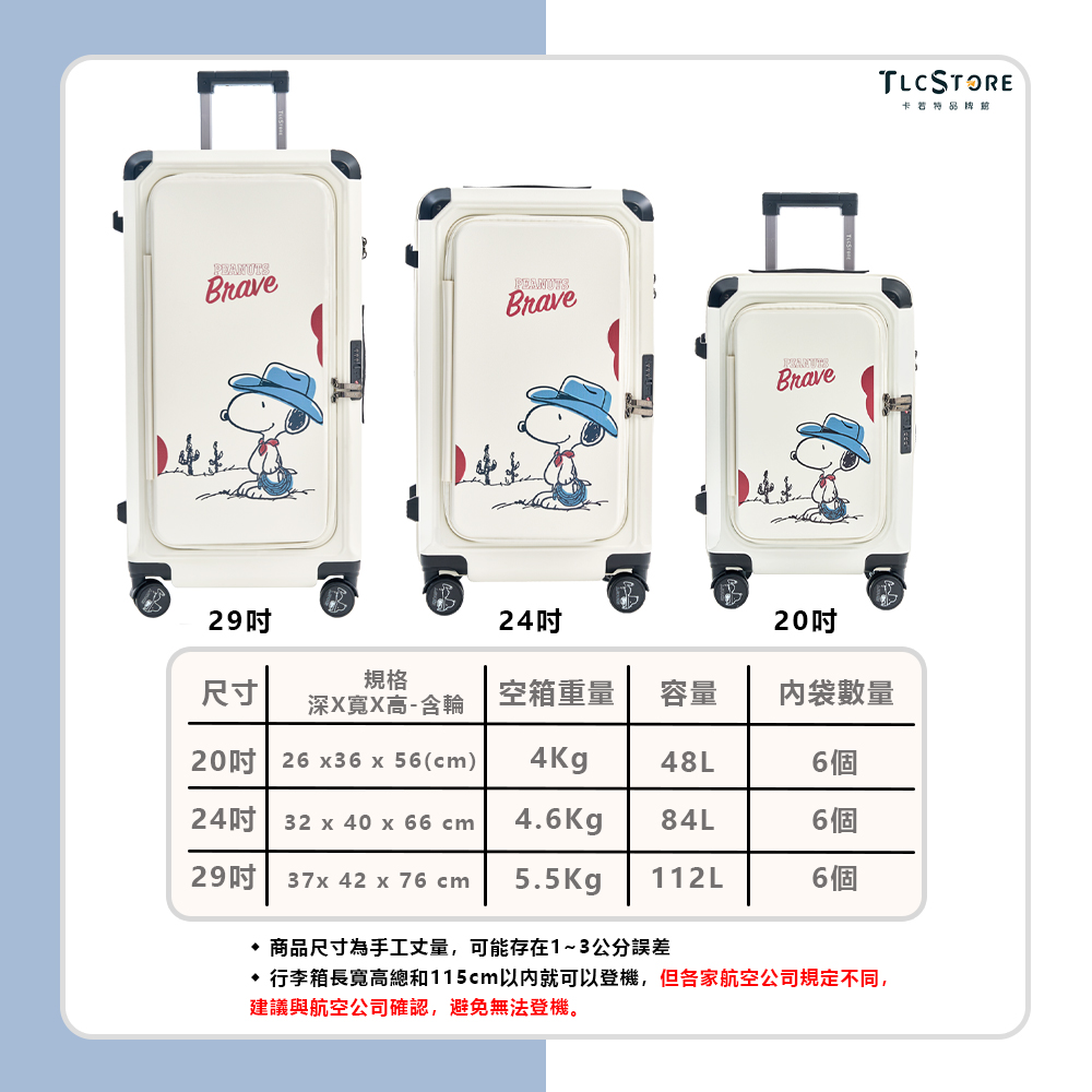 【TLCSTORE】SNOOPY史努比24吋雙開上掀行李箱(2年保固 海關鎖 360度飛機輪)