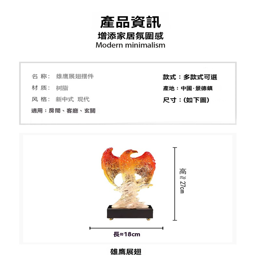 【超微米】大展宏圖老鷹擺件 雄鷹展翅 辦公室桌面裝飾品 喬遷開業禮品(風水招財擺件18*10*27CM)