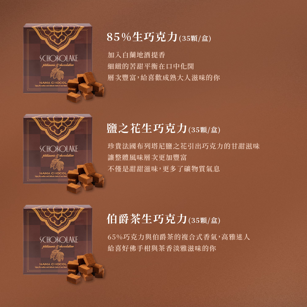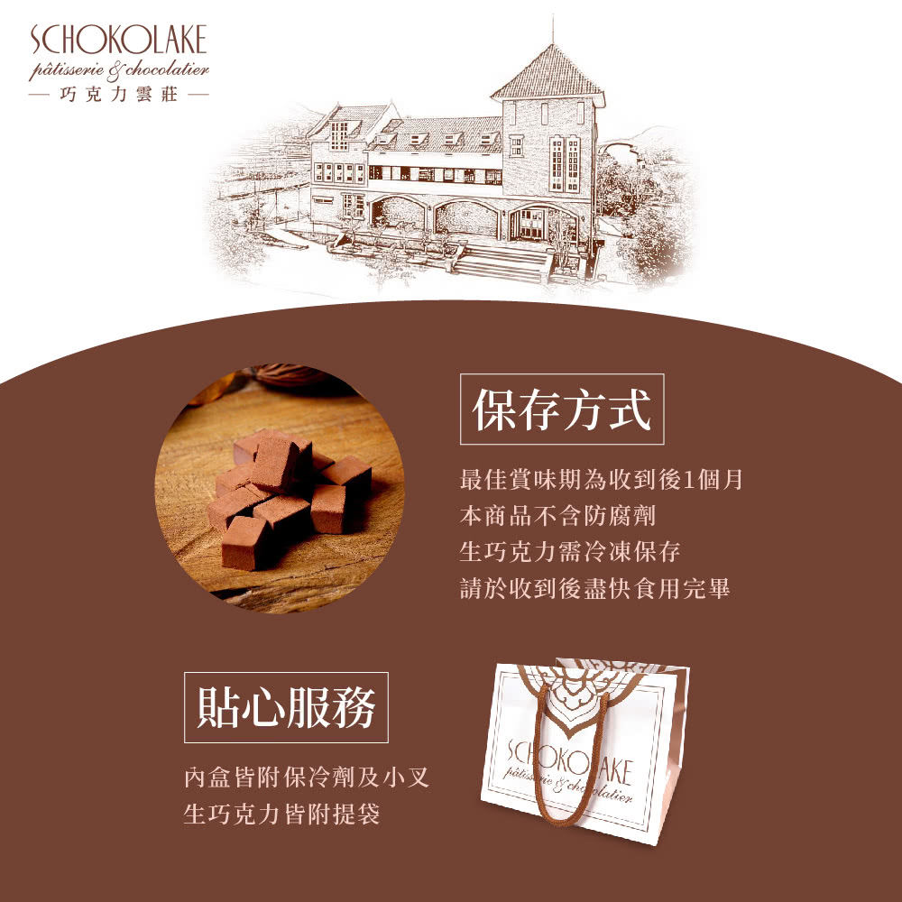 【巧克力雲莊】經典生巧克力系列2盒組(125g/盒_附提袋)