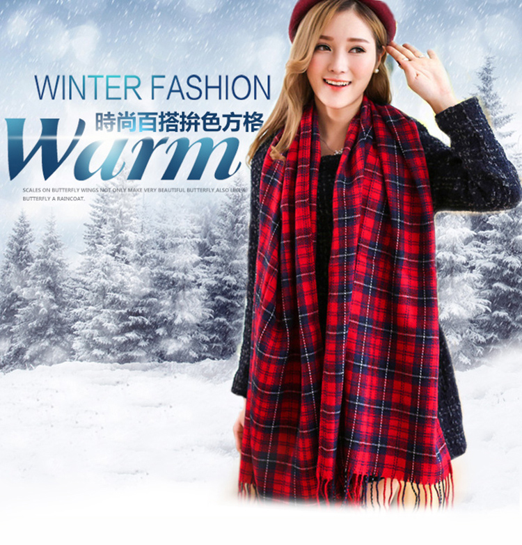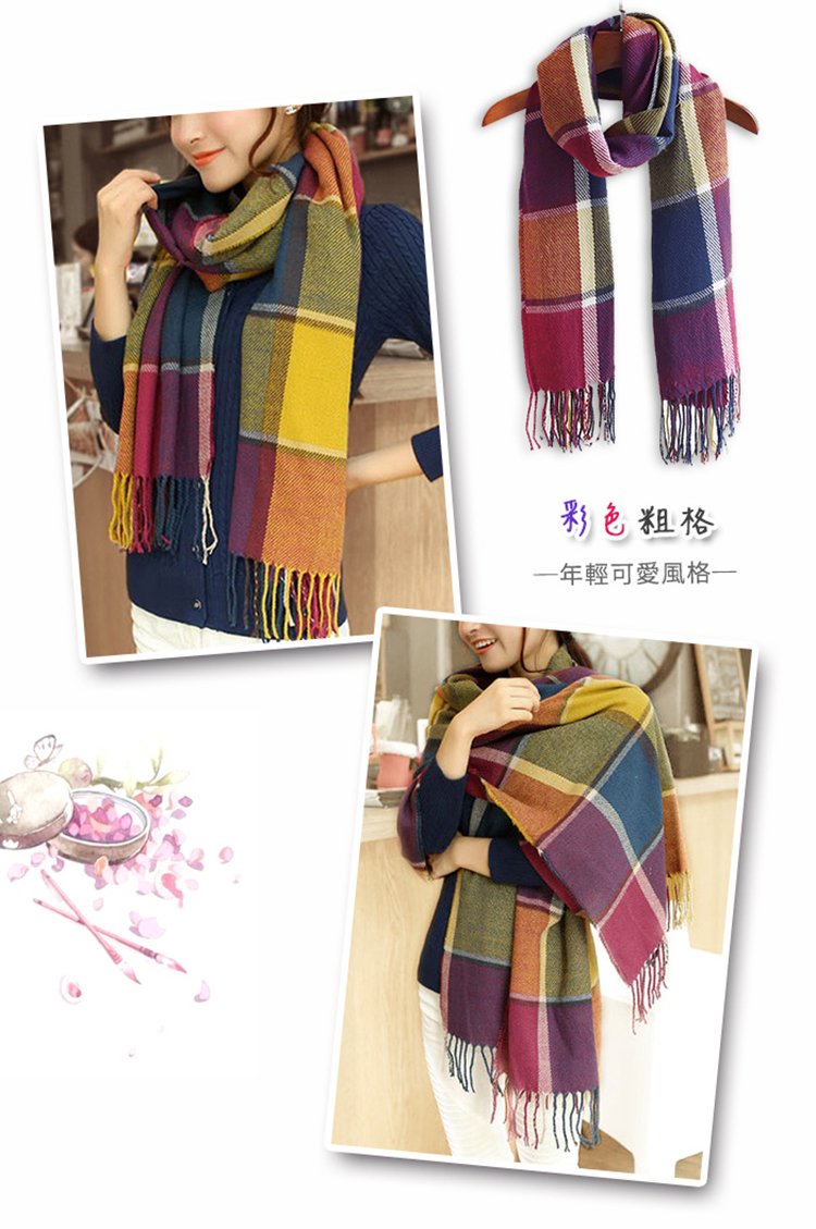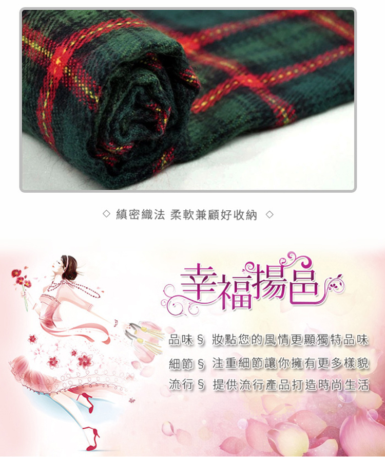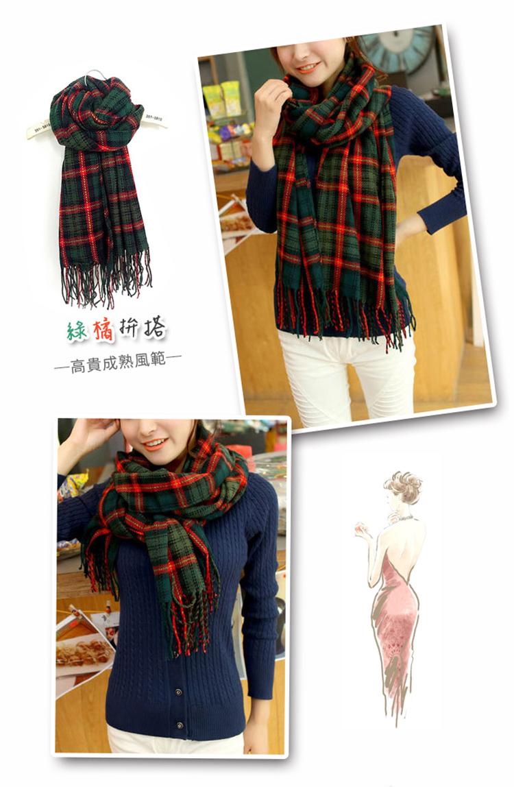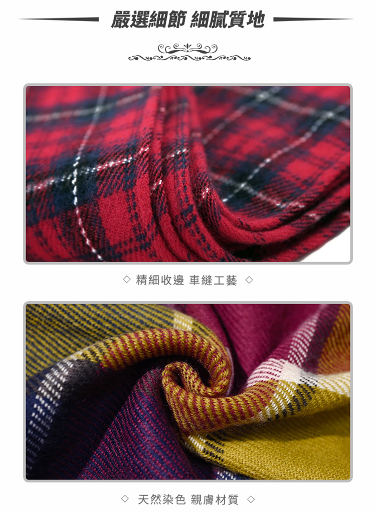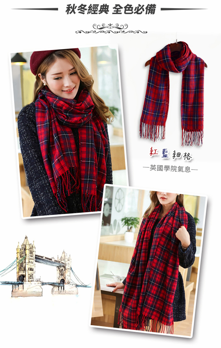 【幸福揚邑】百搭情侶羊絨質感格紋保暖圍巾/披肩(紅藍細格)