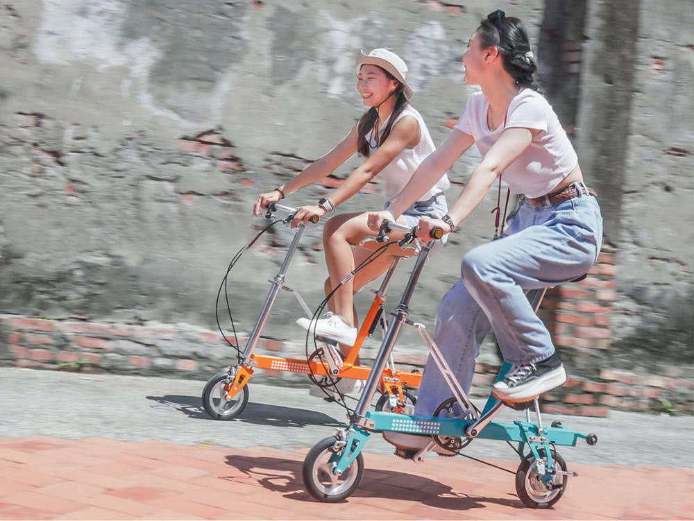 CarryMe是集可愛、聰明、方便、有樂趣的全方位折疊車,為都會代步而生的CarryMe擁有優異性能,車體由7005高鋼性鋁合金打造,輕量而堅固;高齒速比和高壓胎設計,可以輕鬆踩踏,快速前進不費力,轉動迷人的8吋車胎,在城市中移動不只方便,折疊後僅有一隻大傘空間,轉乘大眾運輸也能輕巧攜帶不占空間。