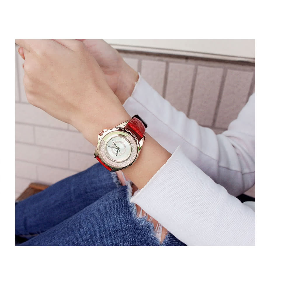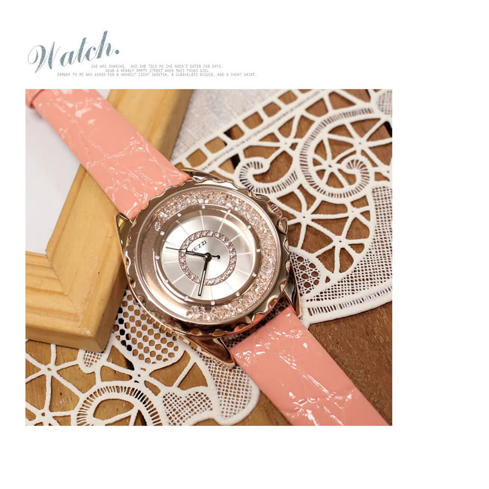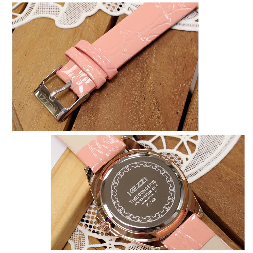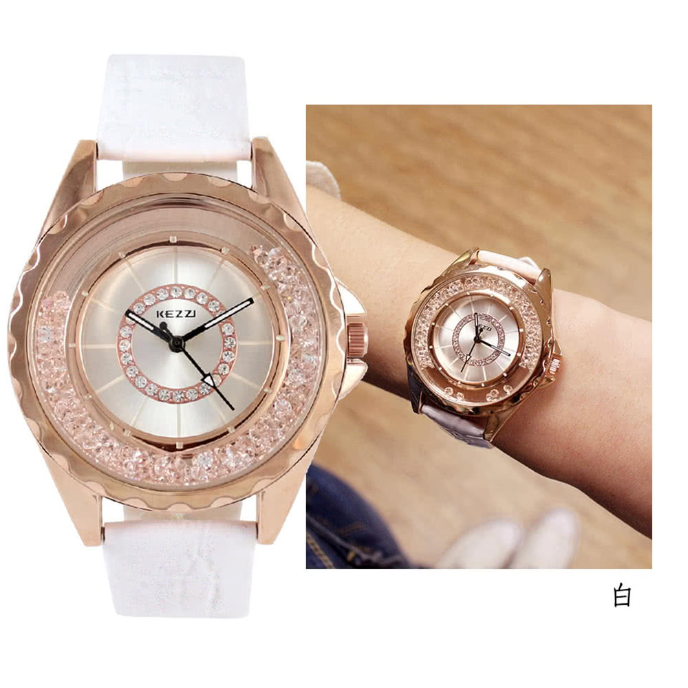 【微笑安安】香港品牌KEZZI*雙圈滑動晶鑽皮帶女錶(共4色)