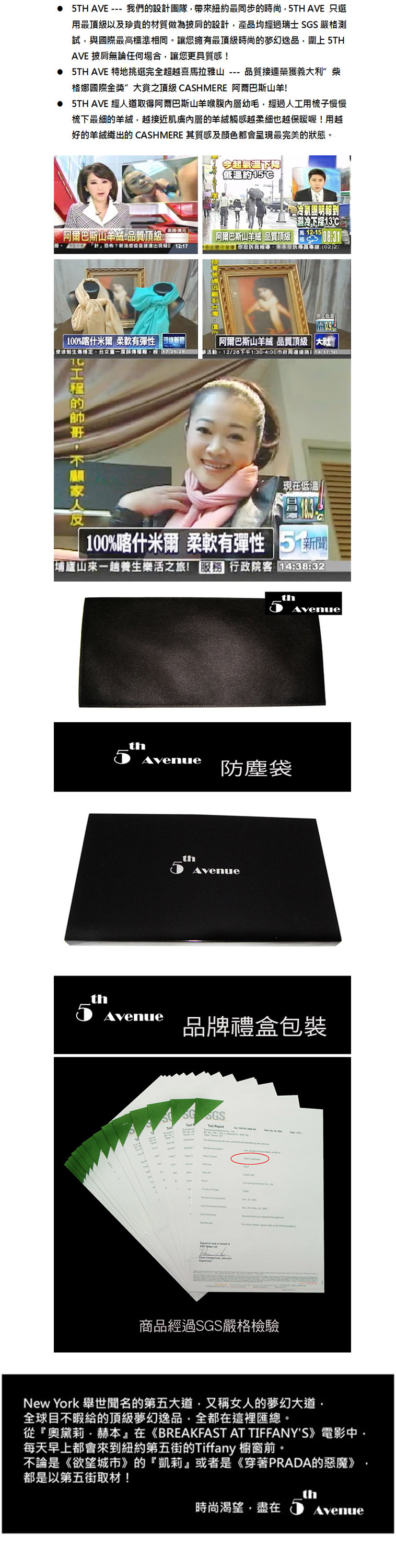 【5TH AVE】第五大道 400支紗 羊絨 圍巾 / 披肩(岩桐紫)