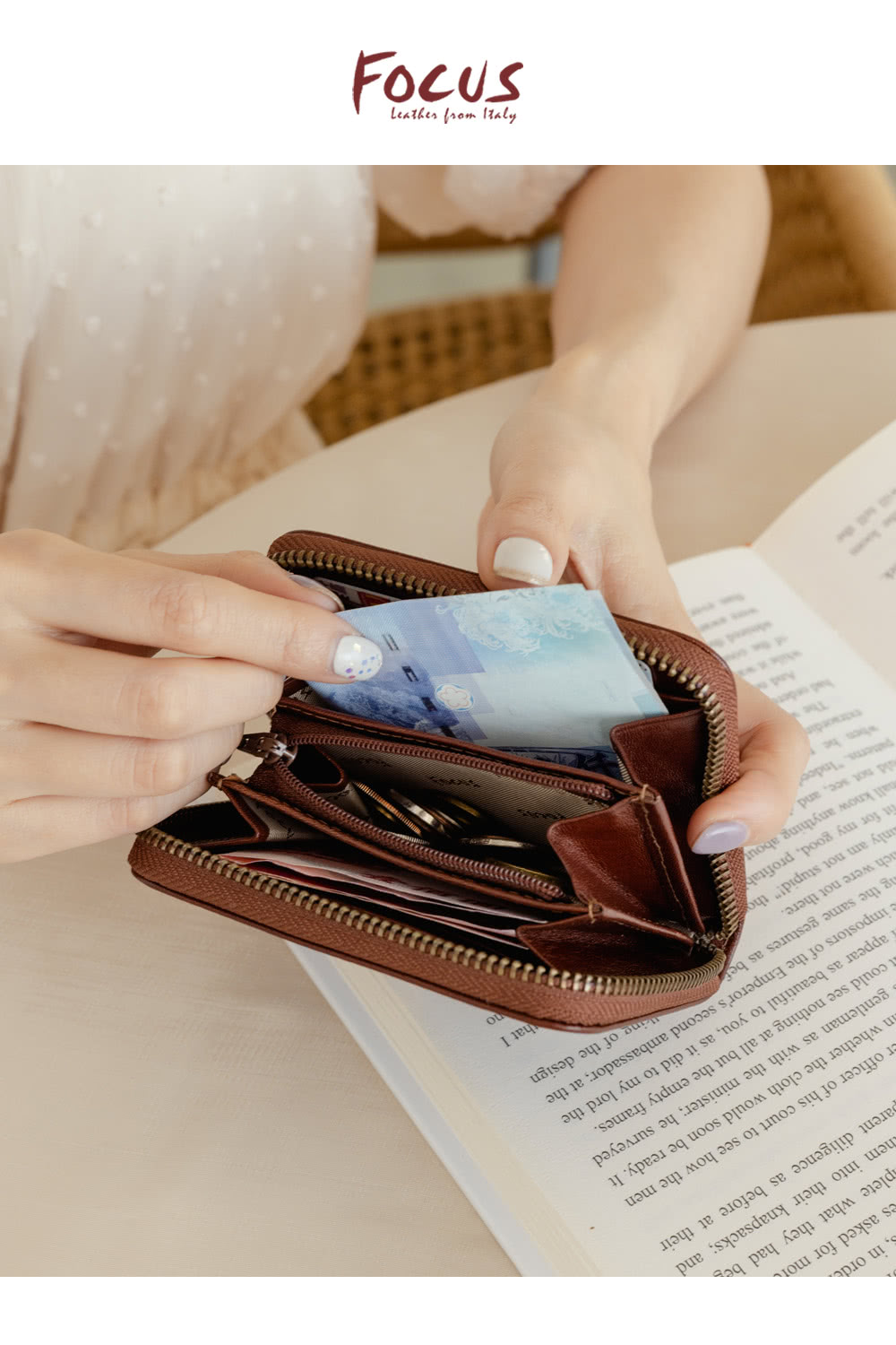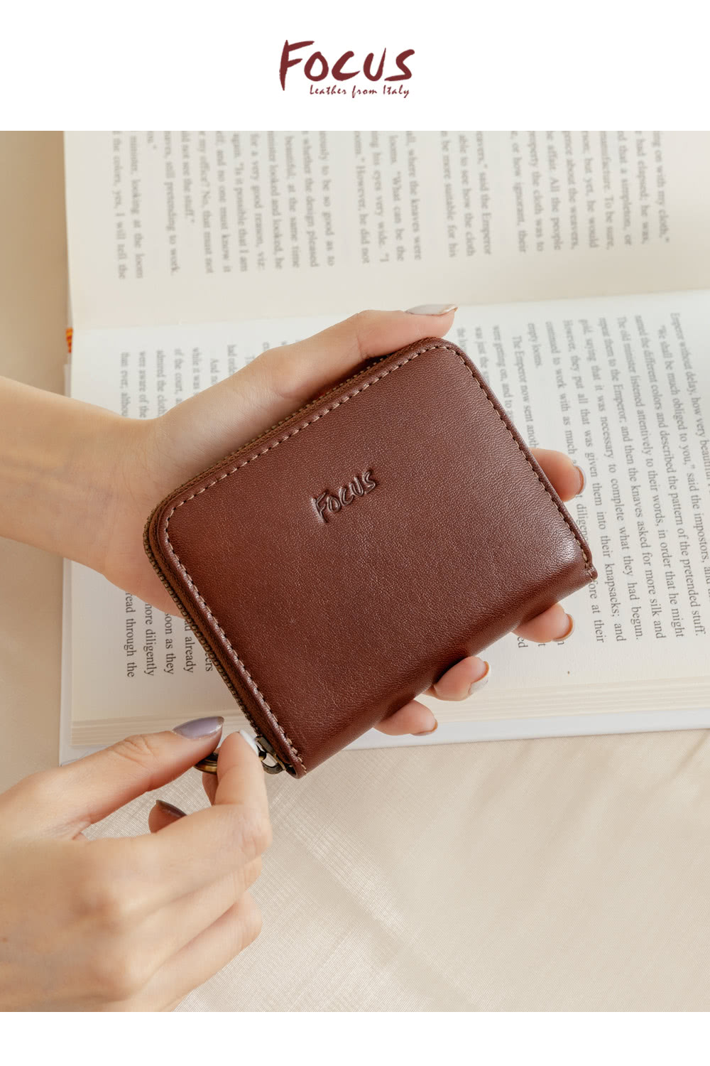 【FOCUS】真皮4卡拉鍊短夾/大零錢包FTA2068(真皮包包 義大利植鞣革/頭層牛皮/真皮皮夾)