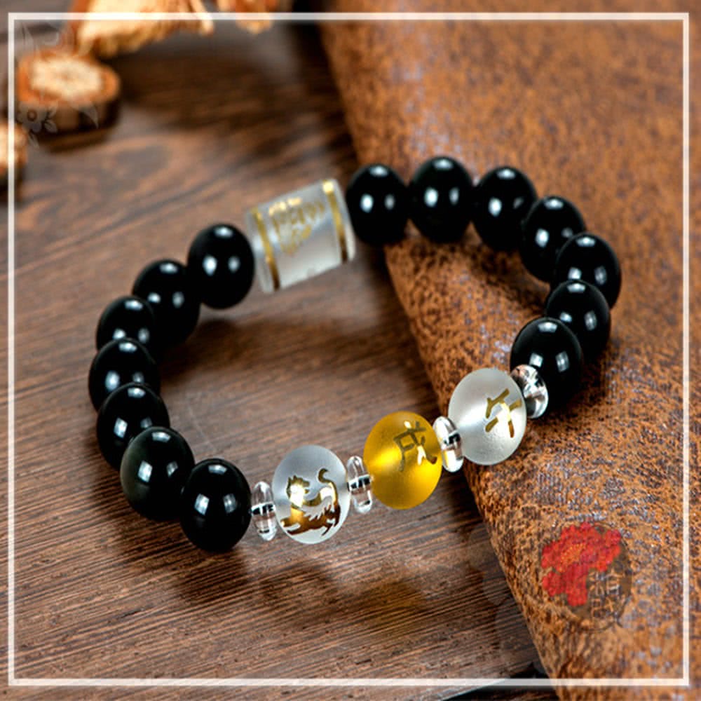 【馥瑰馨盛】貴人虎馬狗黑曜石手鍊l三合六合寅午戌手環(含開光加持)