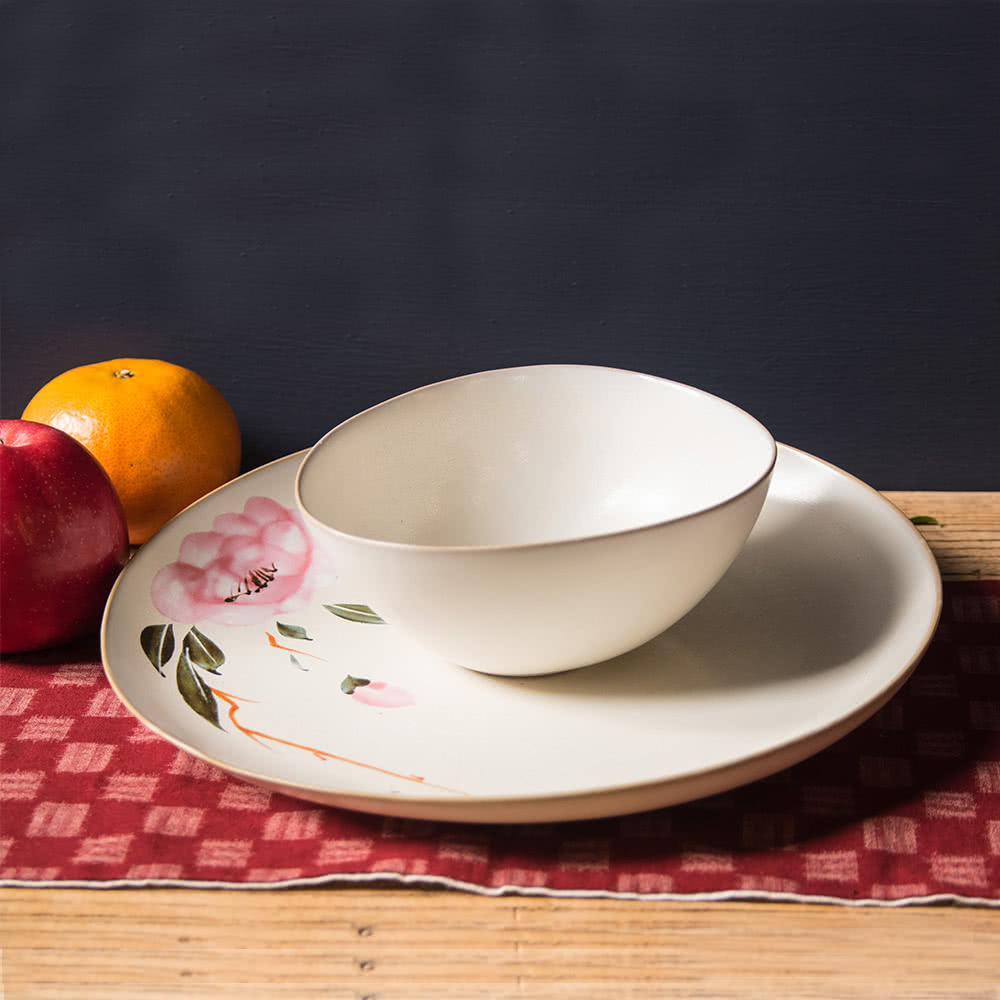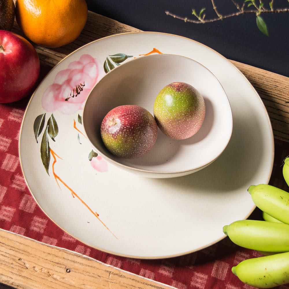 ■古早時期的杯碗瓢盆印刻著不外乎是大自然中隨處可見的生活元素,尤以花卉最為平常,其中最具代表性的象徵富貴崢嶸的牡丹、茶花以及優雅清芬的梅花,以及長壽吉祥的桃子,更是1920年代器皿紋飾的大宗。