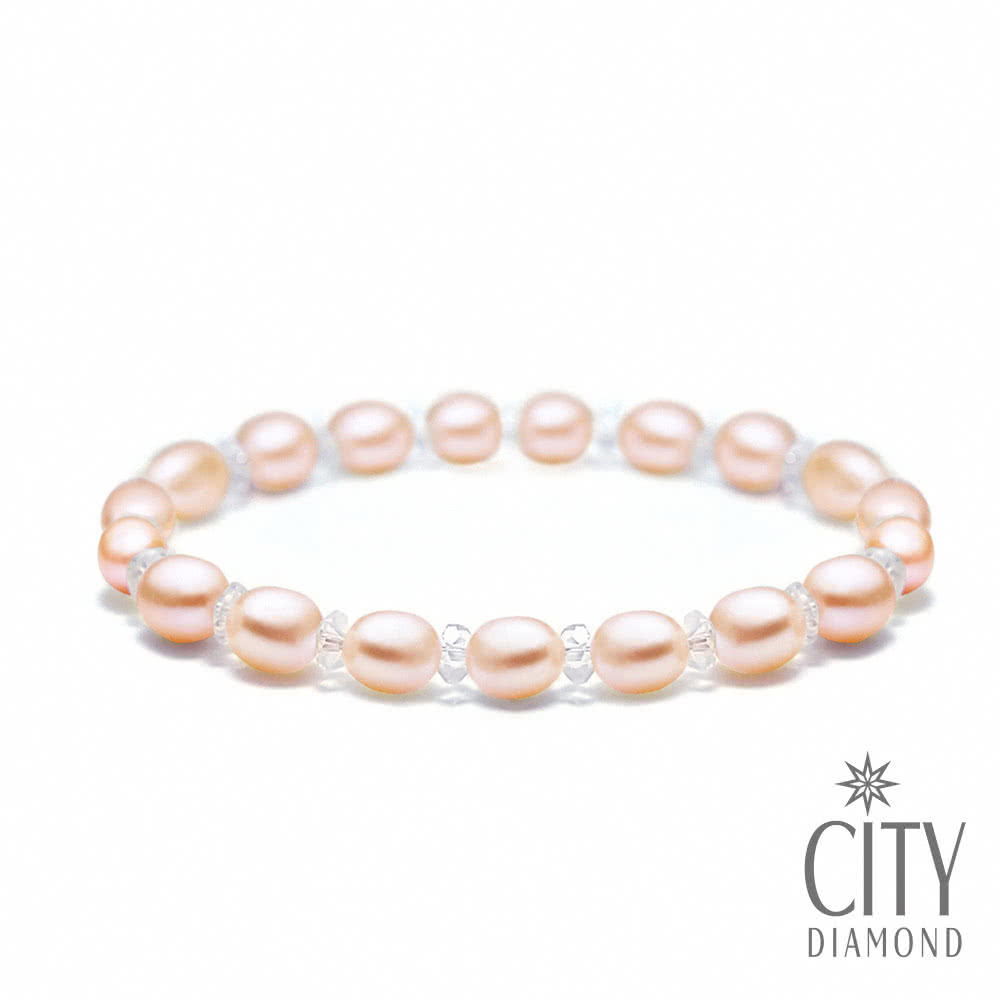 【City Diamond 引雅】天然粉橘珍珠 手鍊(珠潤月詠系列)